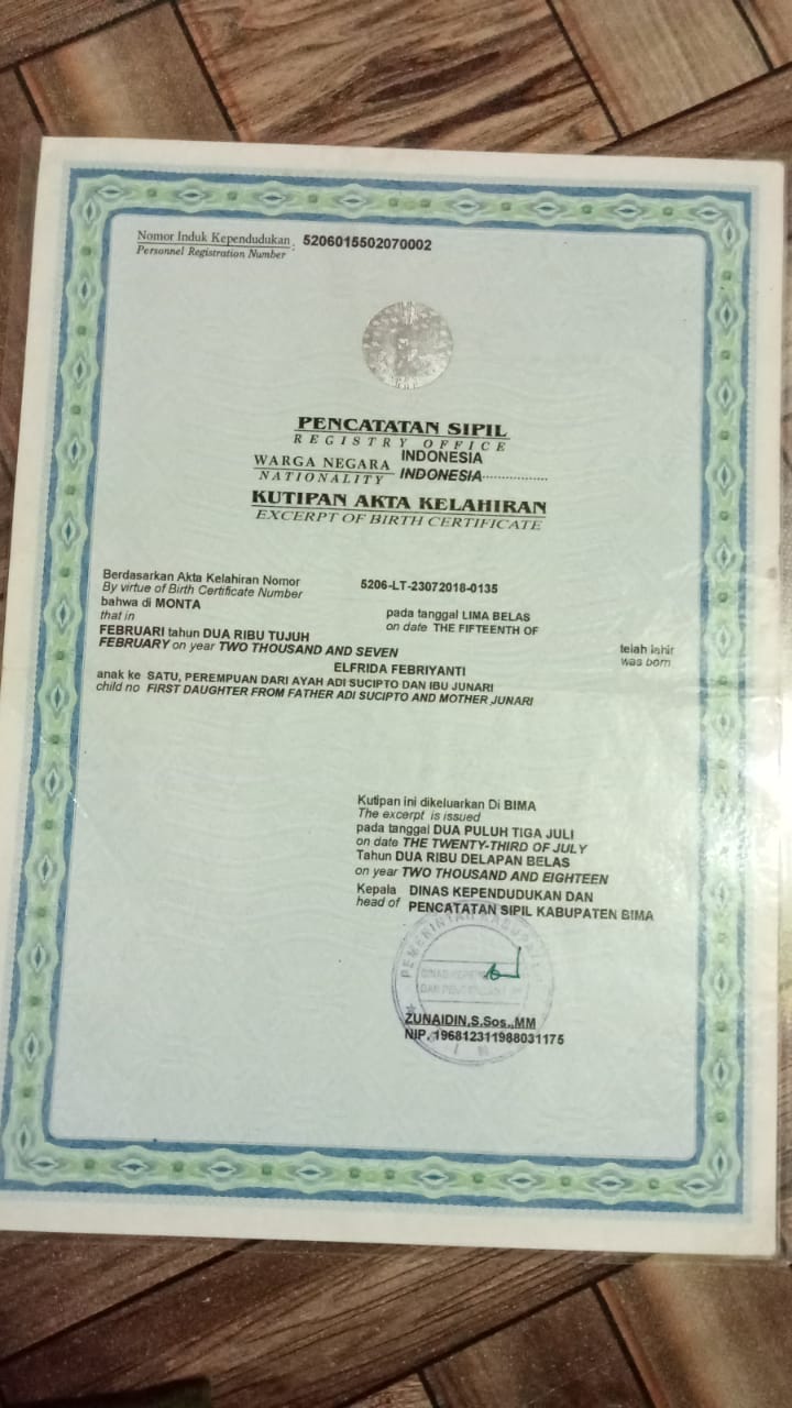 ![]() | Akta KelahiranELFRIDA FEBRIANTI58885888AJnFXTUb4O.jpg | 2024-05-21 14:42 | 103K | |