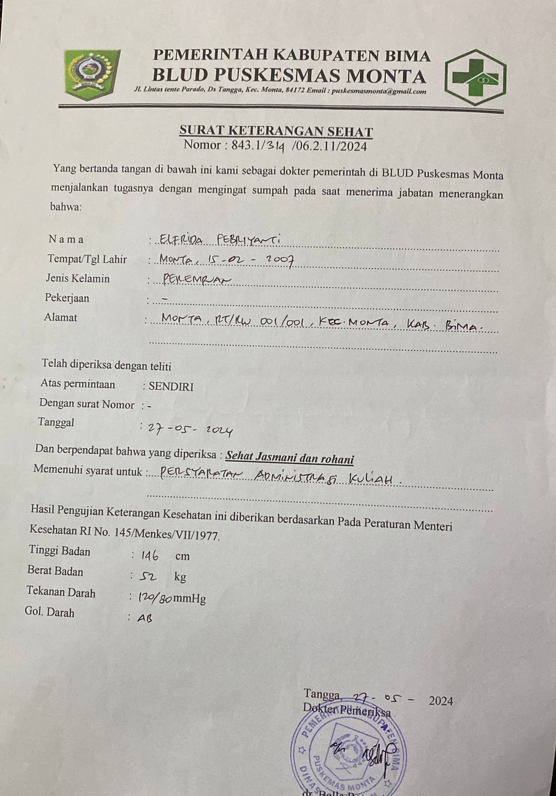![]() | Surat keterangan sehat jasmani dan rohaniELFRIDA FEBRIANTI58885888bkWyvEjmax.jpeg | 2024-08-25 15:36 | 307K | |