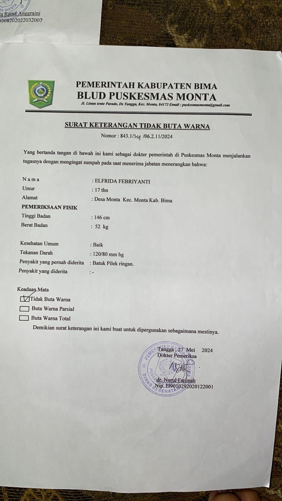 ![]() | Surat keterangan tidak buta warnaELFRIDA FEBRIANTI588858886FcWpjln1L.jpeg | 2024-08-25 15:36 | 181K | |