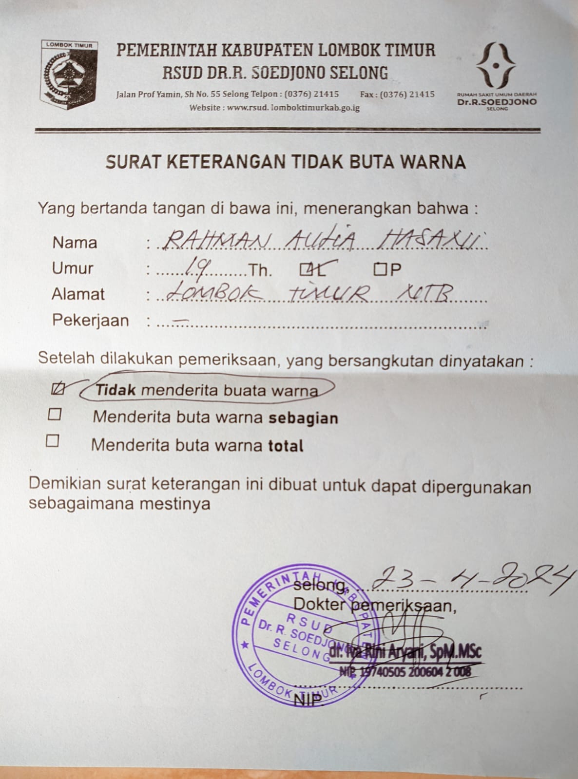![]() | Surat keterangan tidak buta warnaRAHMAN AULIA HASANI57275727MndHNYInN1.jpg | 2024-04-23 04:31 | 170K | |