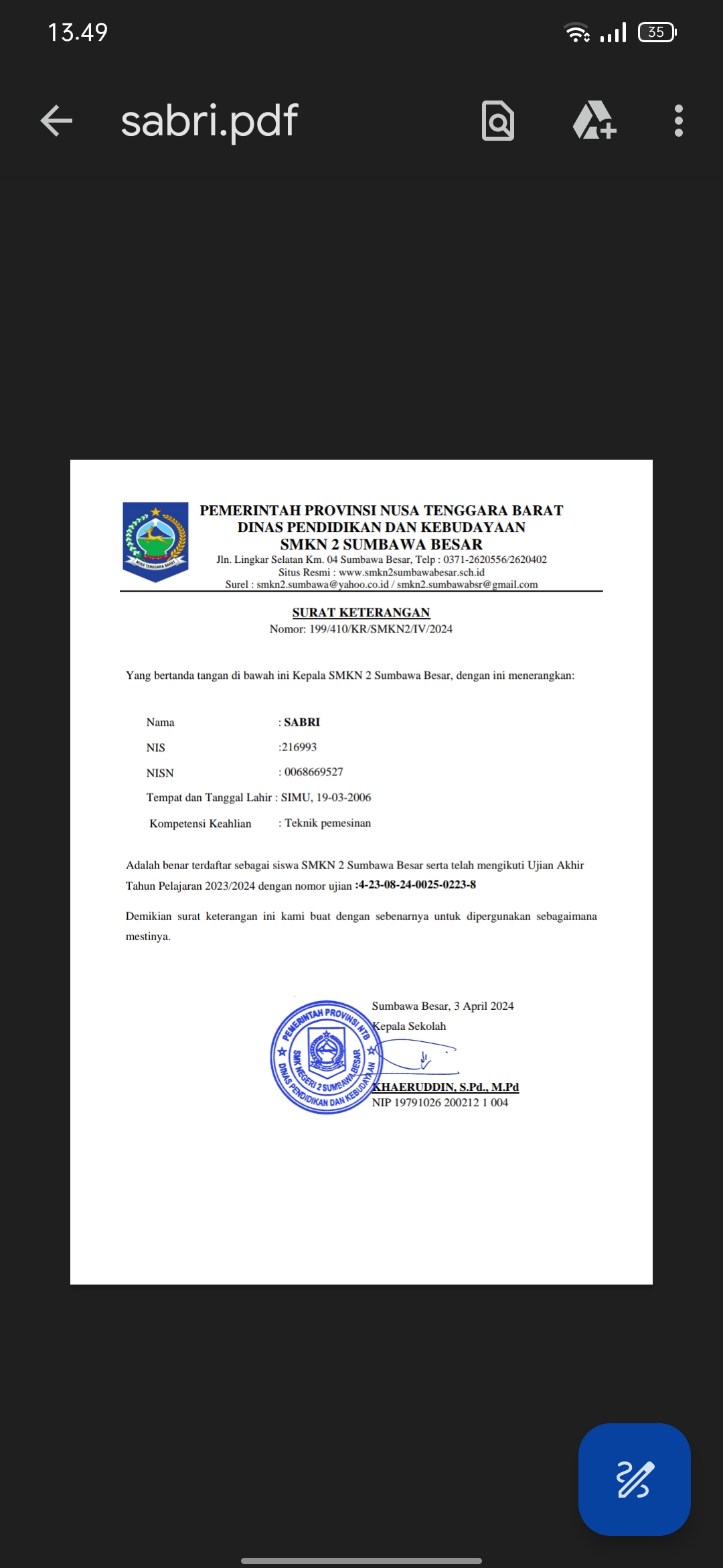 ![]() | Surat keterangan lulus sekolahSabri59745974t3QuHJNzIT.jpg | 2024-06-07 05:50 | 318K | |