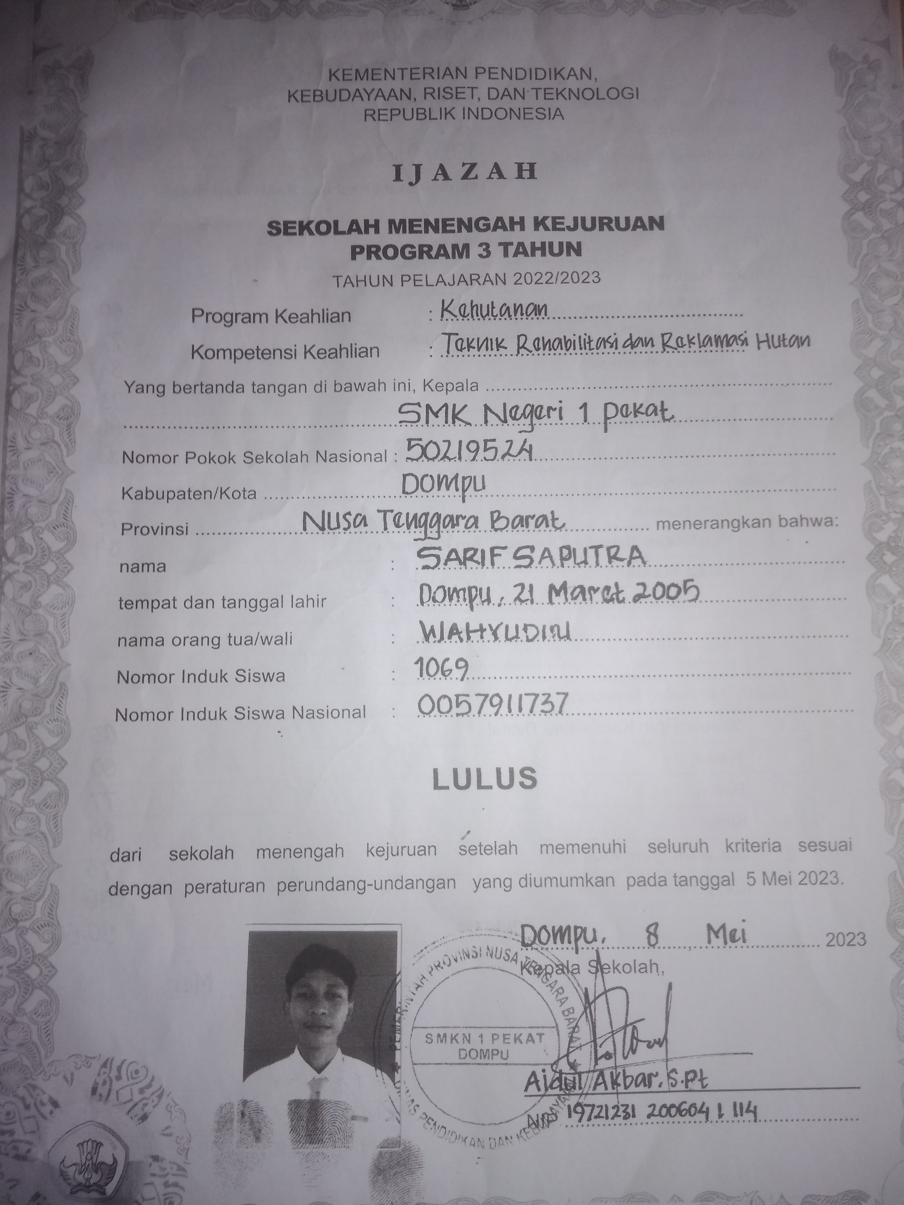 ![]() | Surat keterangan lulus sekolahSarif sa putra59735973l3iHtfocBR.jpg | 2024-04-22 06:40 | 1.3M | |