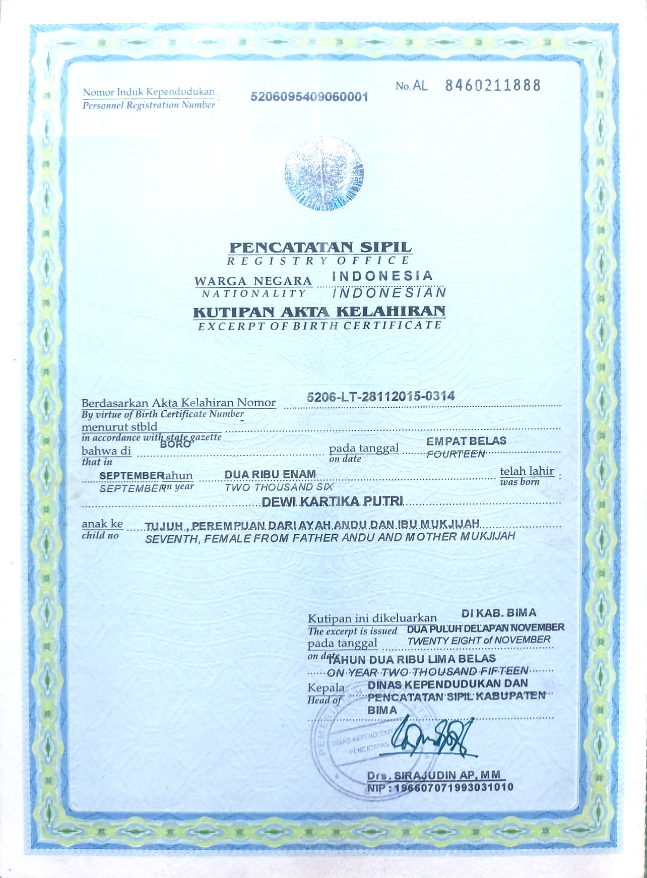 Akta KelahiranDewi Kartika Putri1088510882YkoCTriLuo.jpg