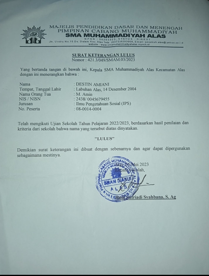 Index of /storage/app/public/mahasiswa/Gelombang II3/Kerjasama/Undangan14/Destin Amiani5204055412040003900900/Ijazah SMP/SMA
