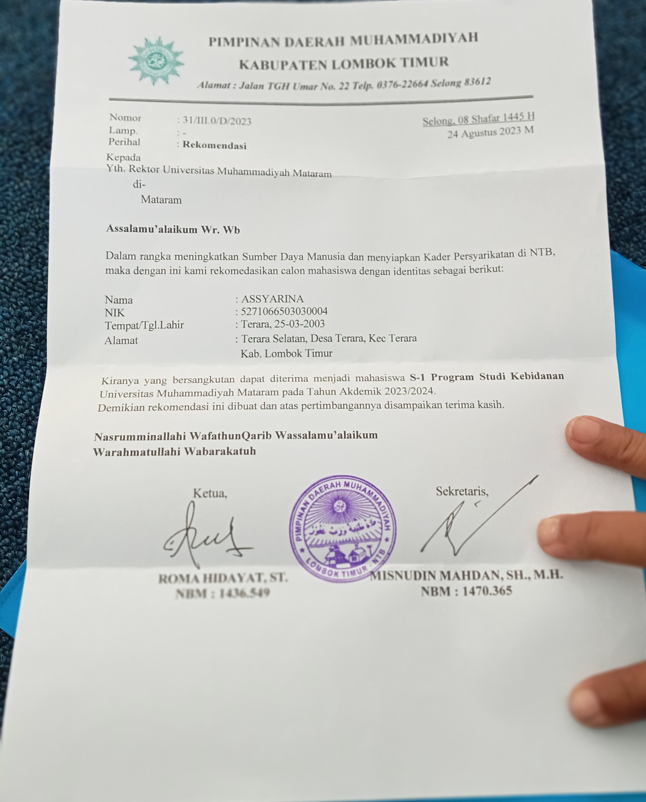![]() | Surat Rekomendasi pengaantar dari PP Muhammadiyah (Kepala Sekolah)assyarina50285028cRQbVdlATH.jpg | 2023-08-30 17:58 | 519K | |