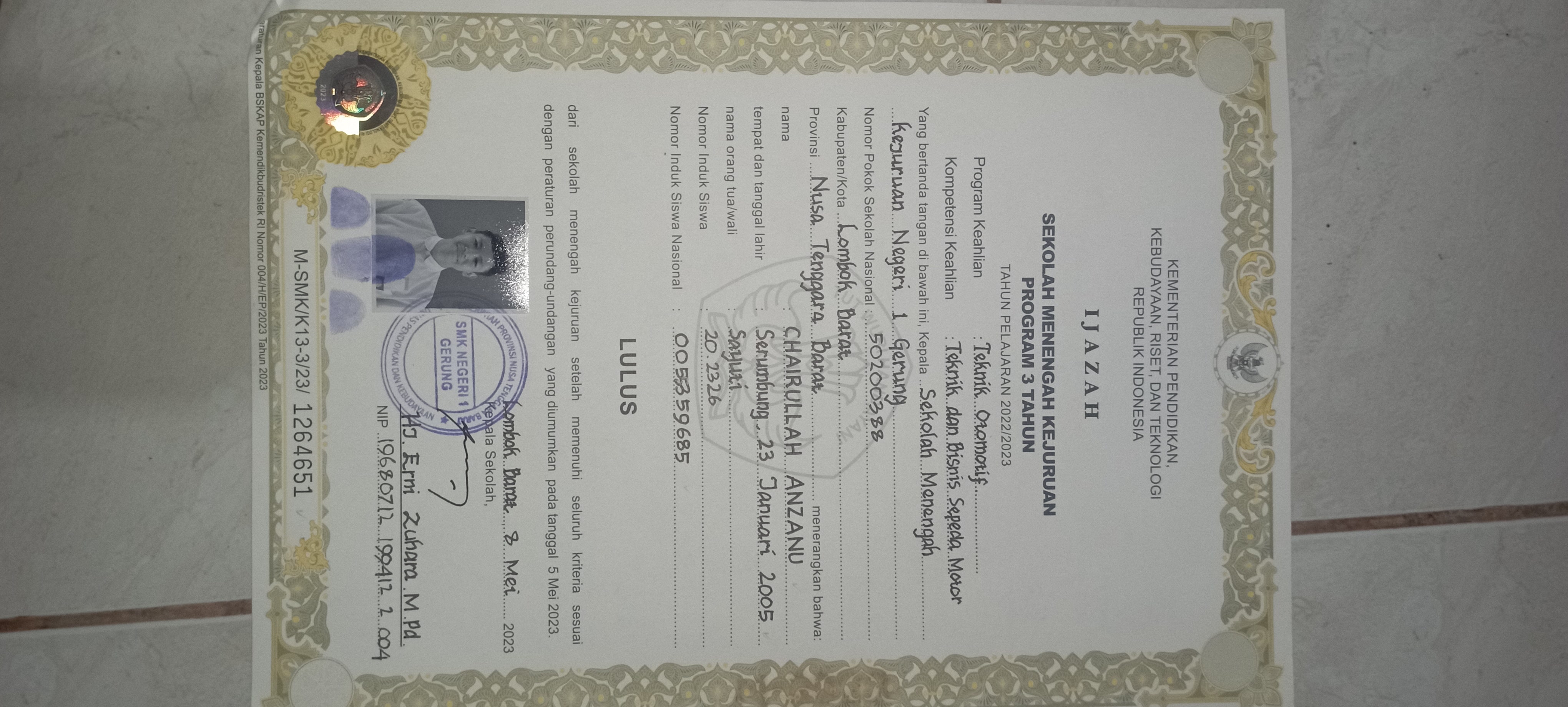 Index of /storage/app/public/mahasiswa/Gelombang II3/Umum11/Chairullah Anzanu520113230105000220802080/Ijazah SMP/SMA