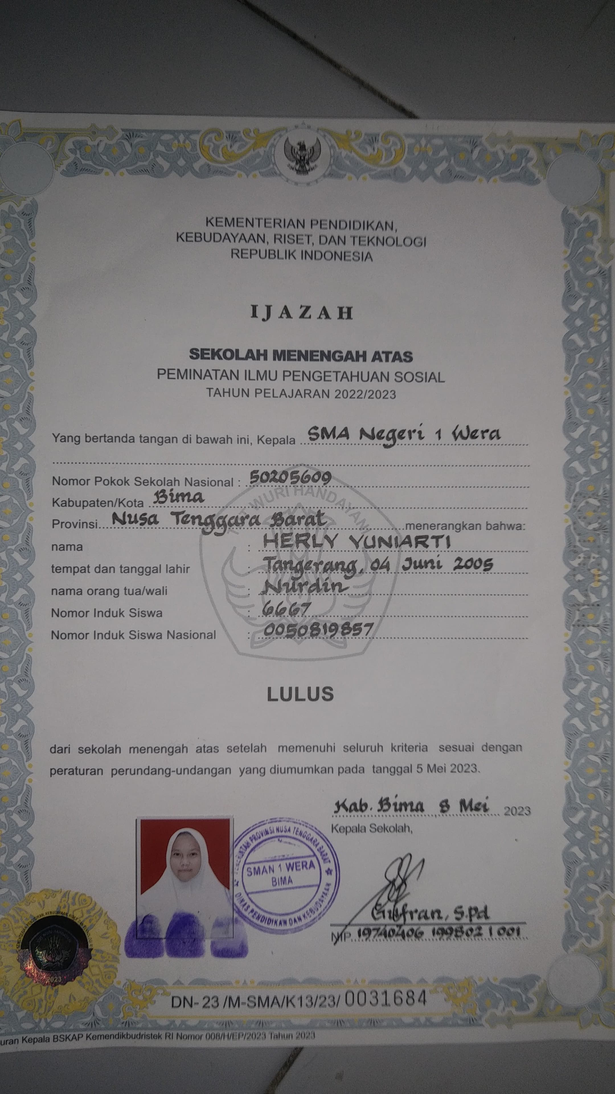 Index of /storage/app/public/mahasiswa/Gelombang II3/Umum11/Herly yuniarti360318440605000411961196/Ijazah SMP/SMA