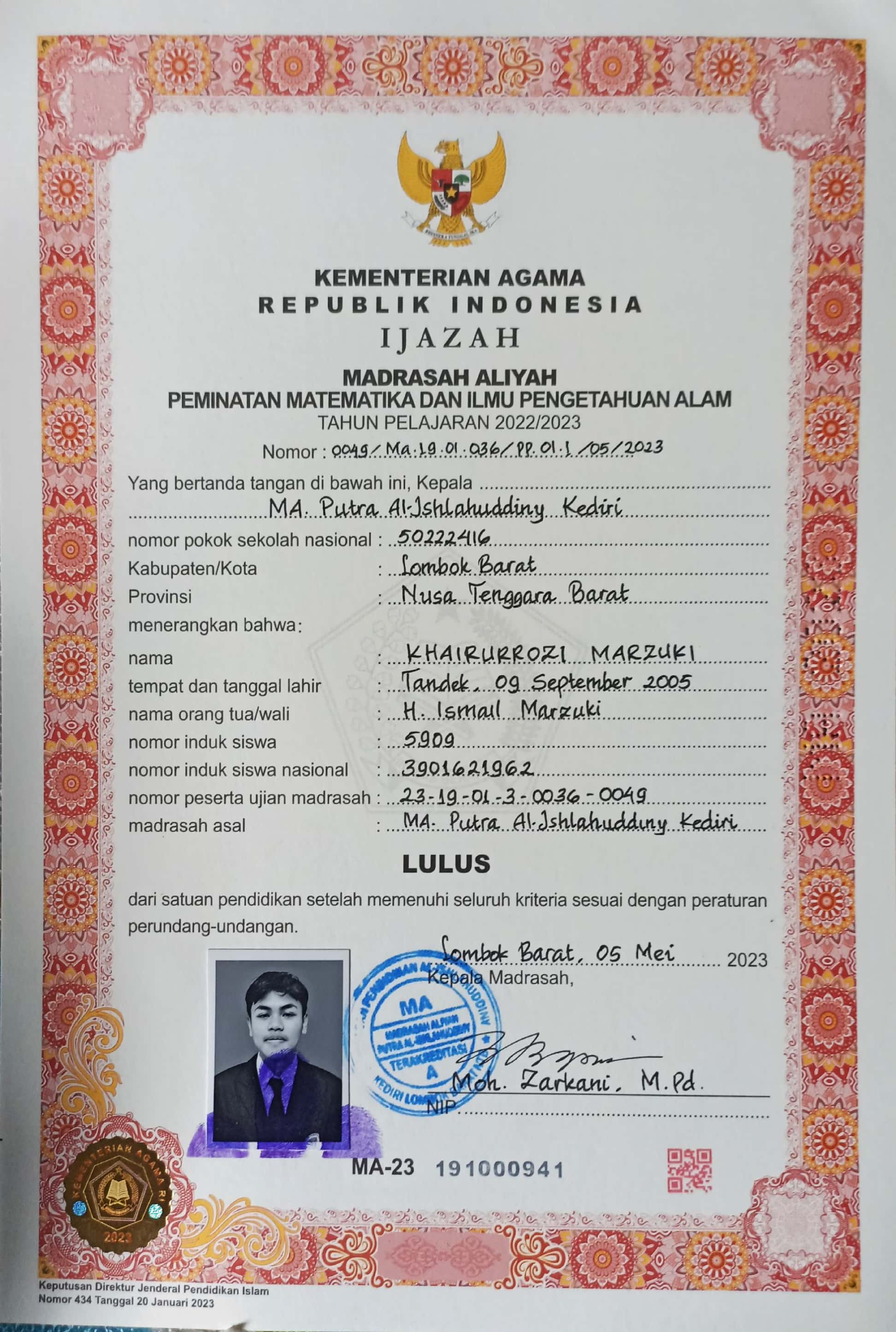 Index of /storage/app/public/mahasiswa/Gelombang II3/Umum11/Khairurrozi Marzuki5202020909050005951951/Ijazah SMP/SMA