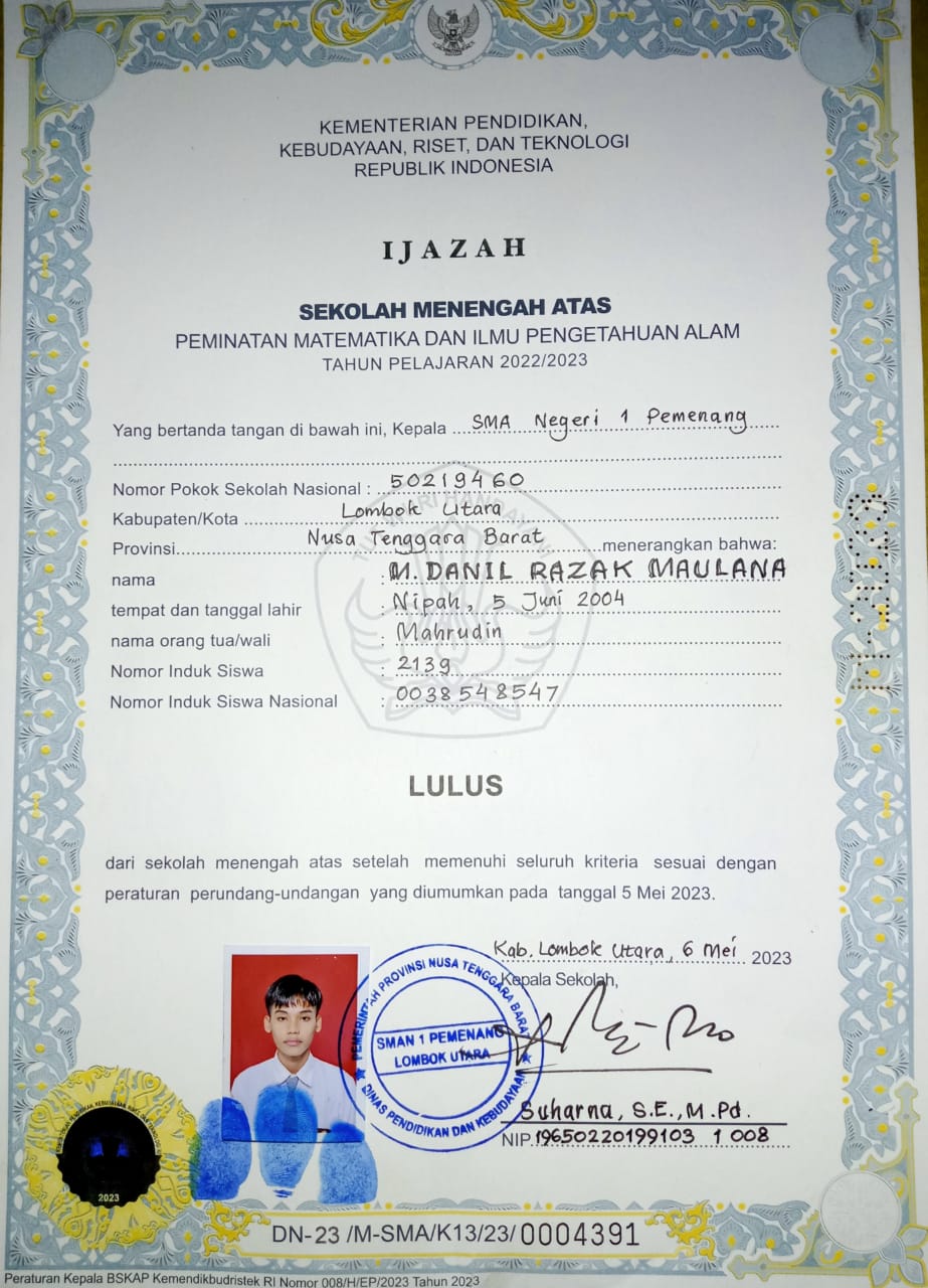 Index of /storage/app/public/mahasiswa/Gelombang II3/Umum11/M Danil Razak Maulana520805050604000618721872/Ijazah SMP/SMA