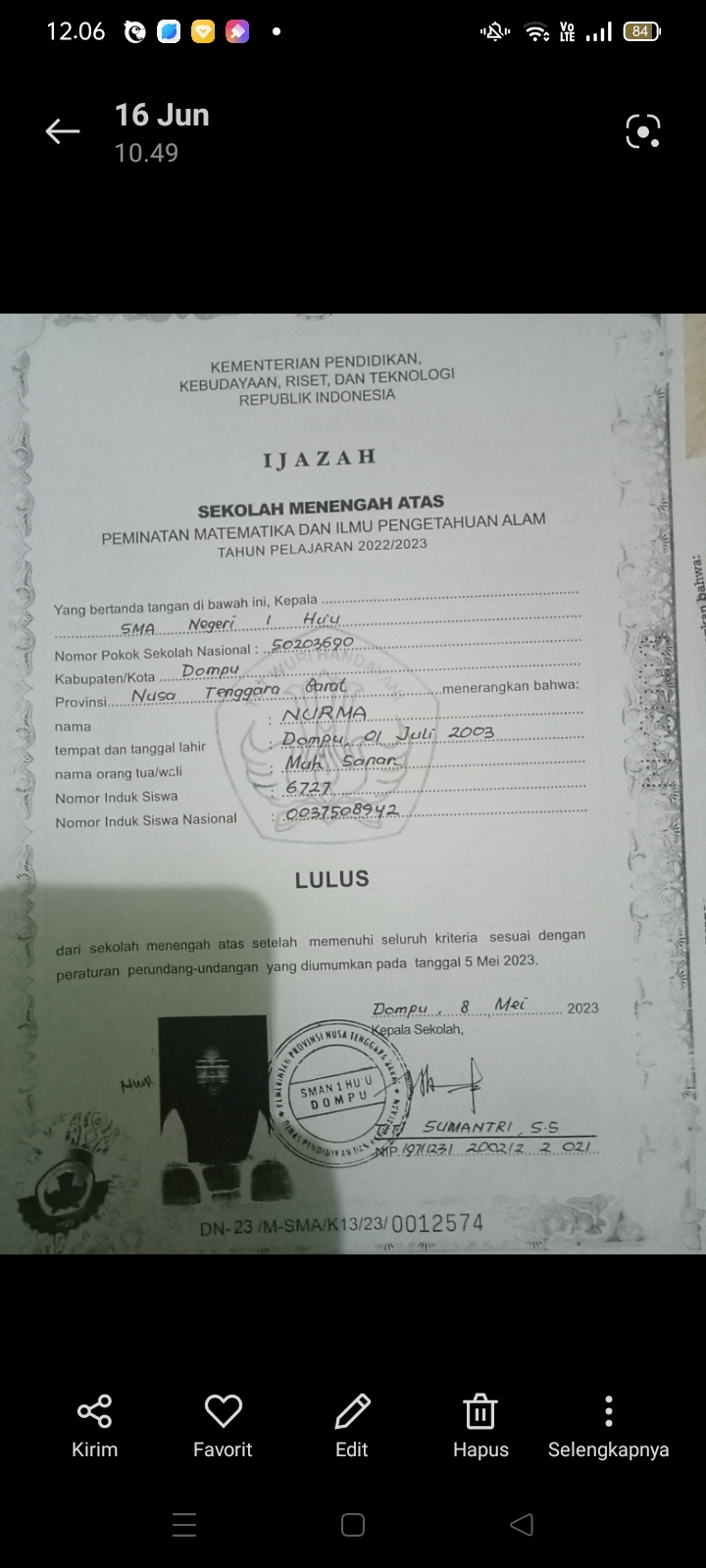 Index of /storage/app/public/mahasiswa/Gelombang II3/Umum11/Nurma520503410703006514071407/Ijazah SMP/SMA