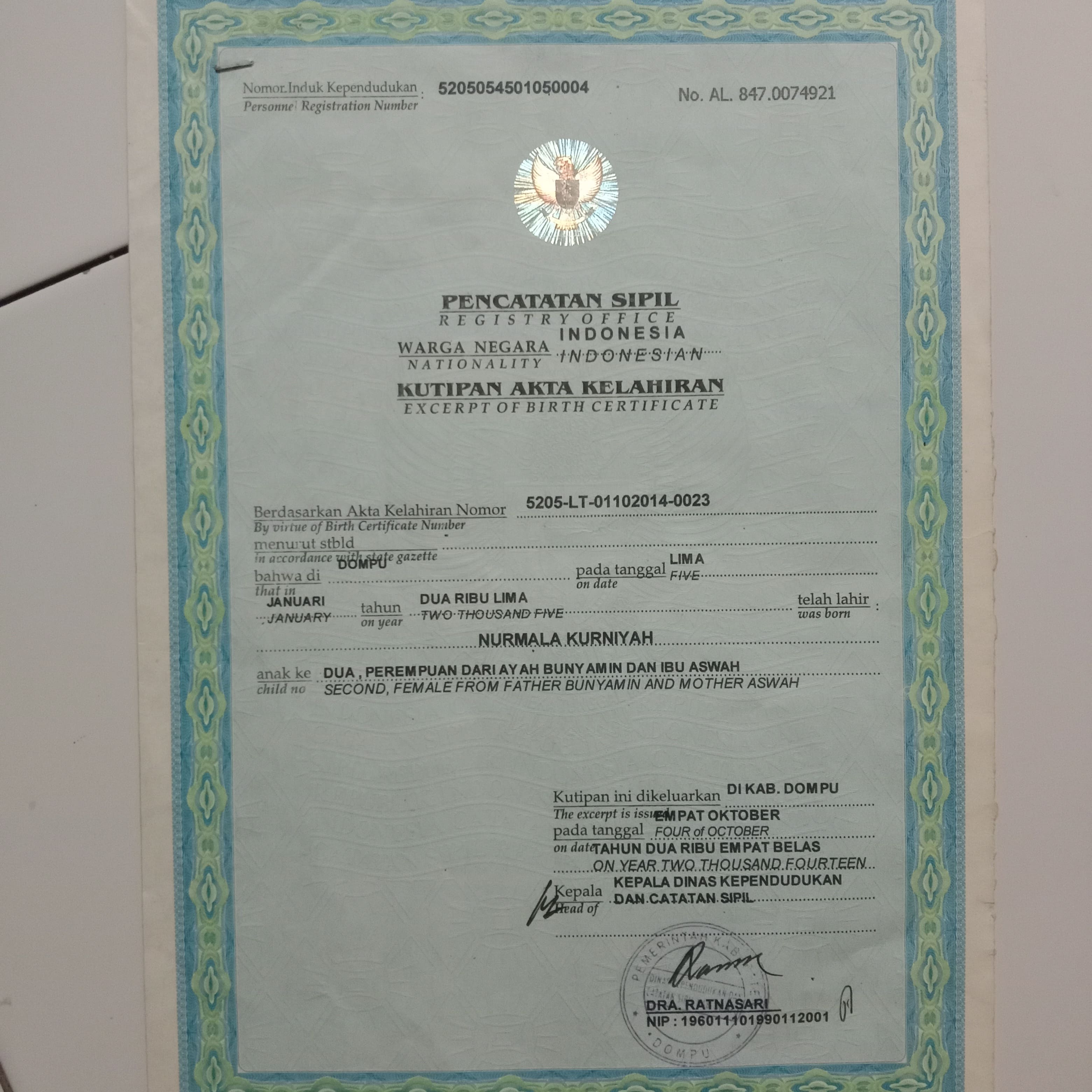 ![]() | Akta KelahiranNurmala kurniyah12411241gVfYUGb4V7.jpg | 2023-08-03 04:25 | 603K | |