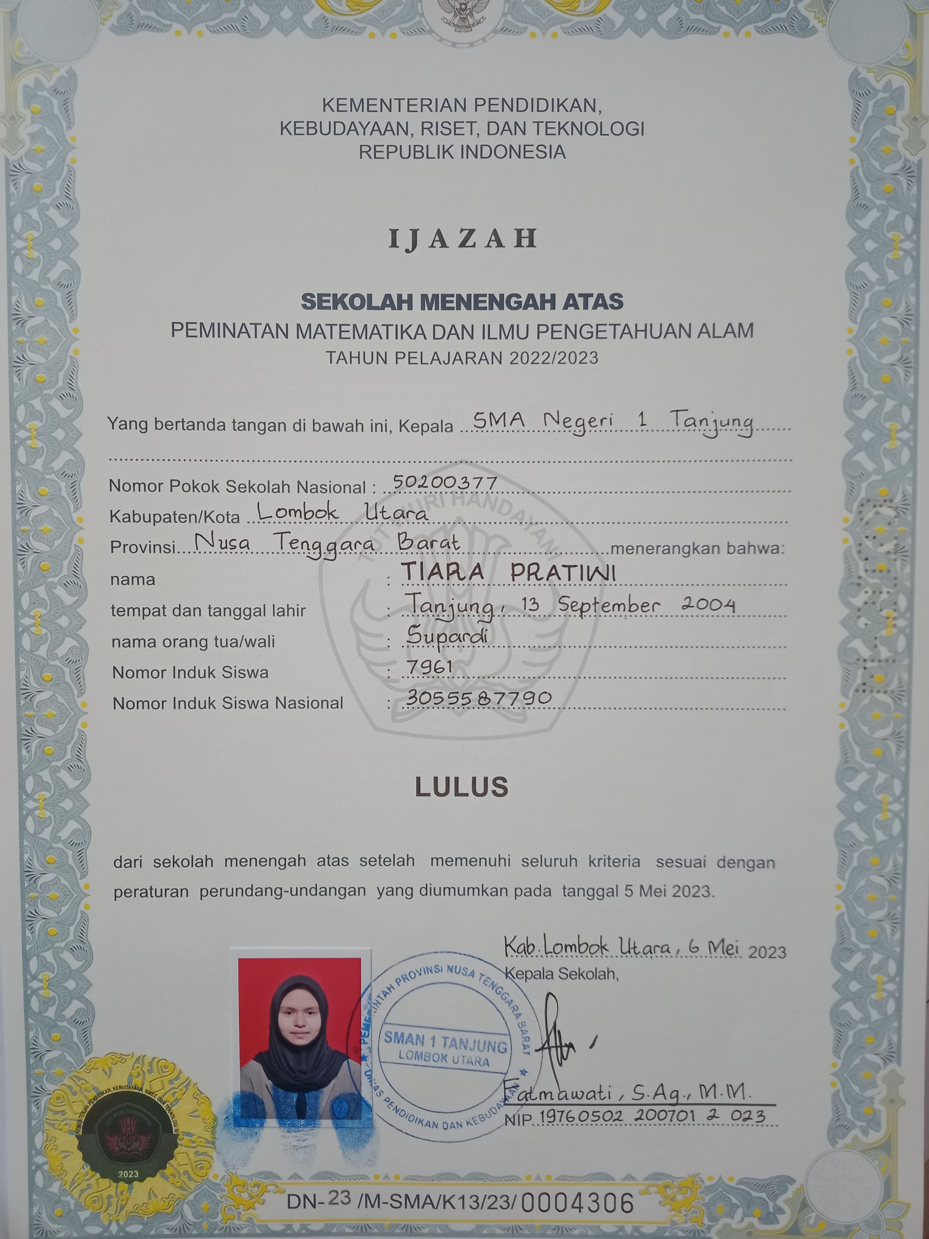 Index of /storage/app/public/mahasiswa/Gelombang II3/Umum11/Tiara pratiwi520801530904000119201920/Ijazah SMP/SMA