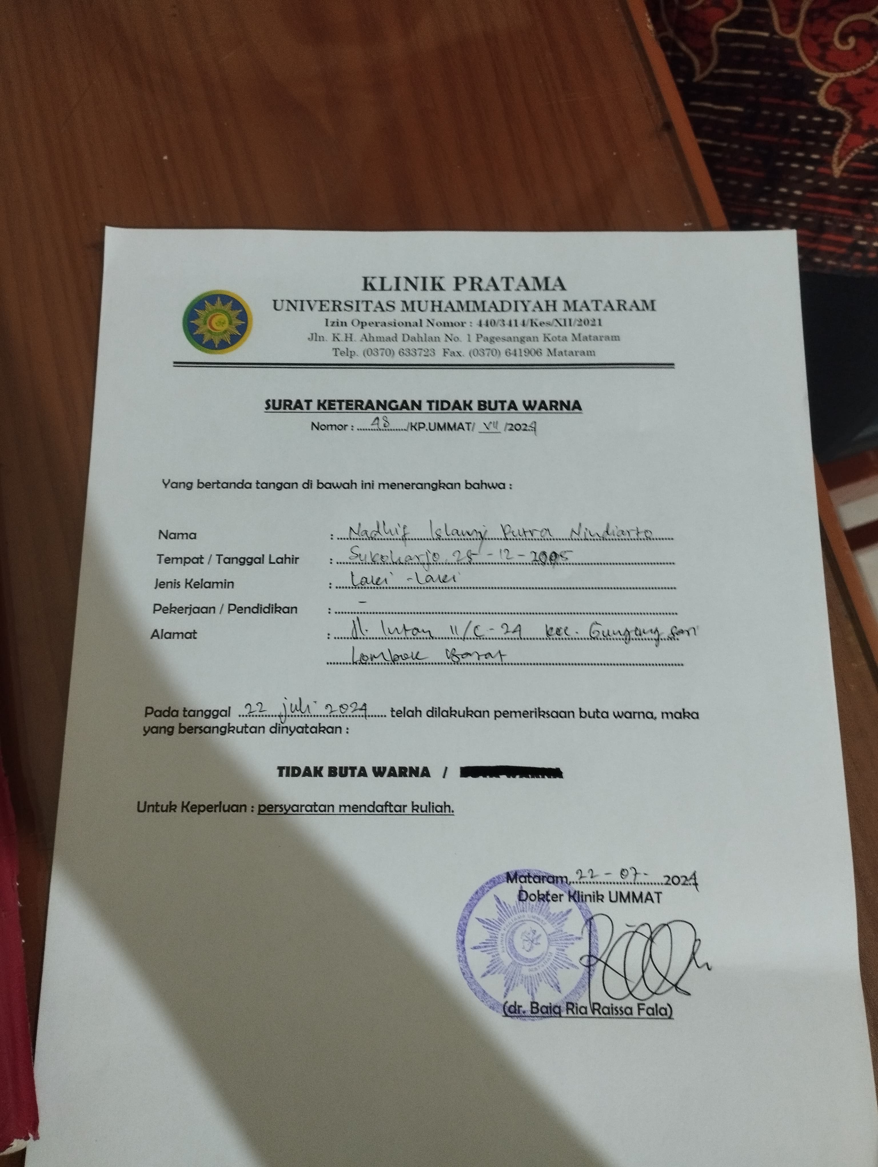![]() | Surat keterangan tidak buta warnaNADHIF ISLAMY PUTRA NINDIARTO73777376INjRpjeThx.jpeg | 2024-07-23 02:17 | 824K | |