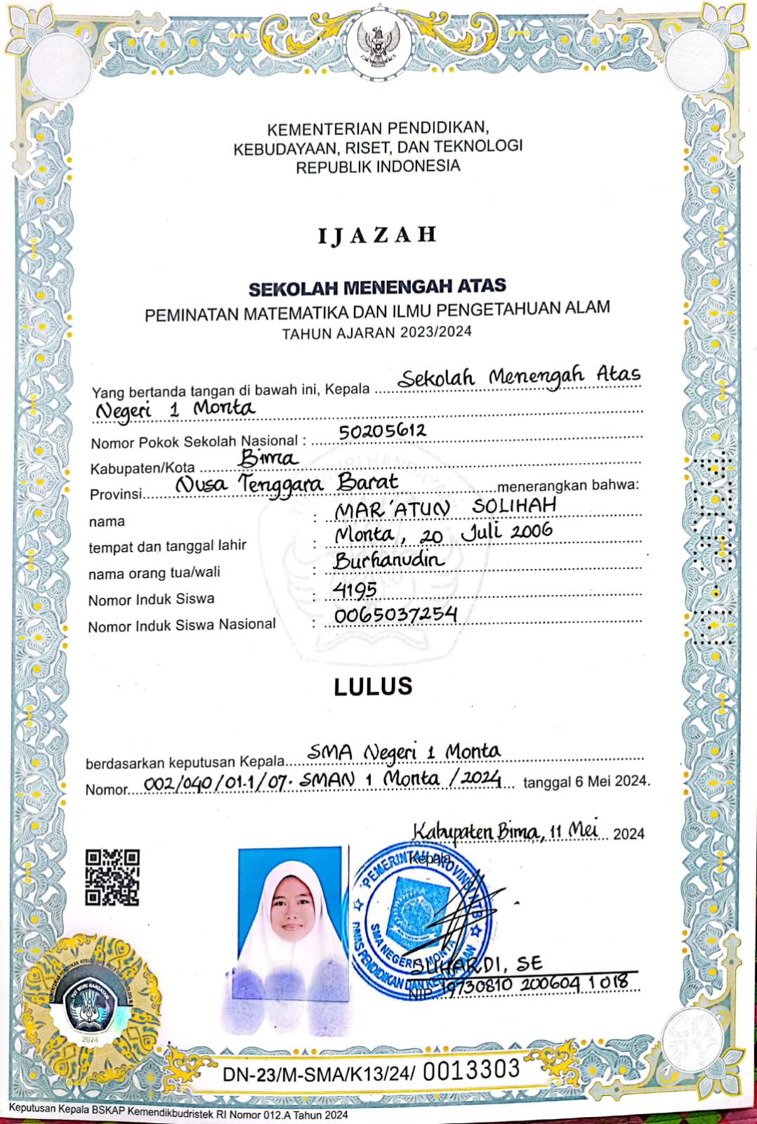 Index of /storage/app/public/mahasiswa/Gelombang II7/Prestasi Akademik47/Mar'atun Solihah520601600706000273377336/Ijazah SMP/SMA
