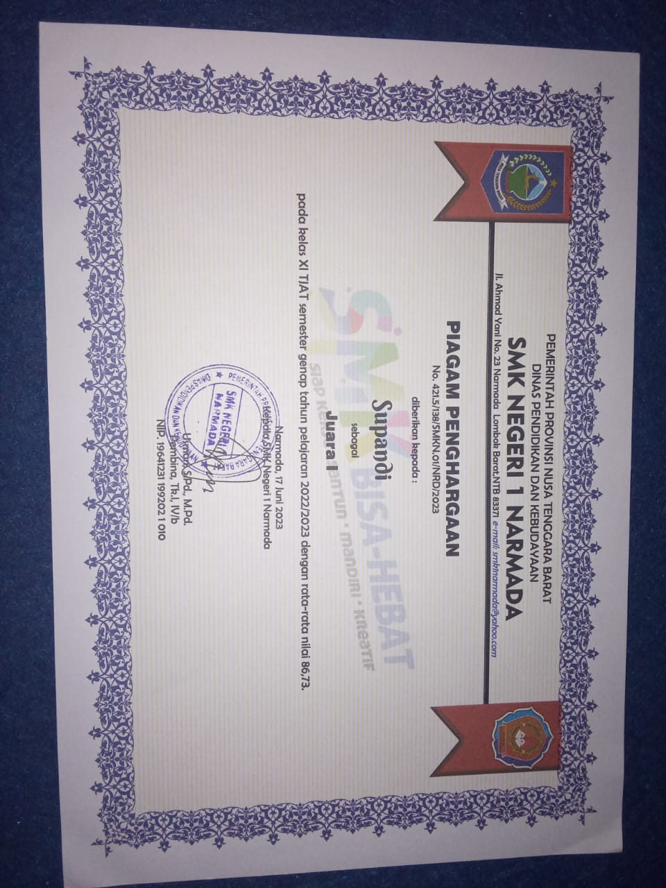 Index of /storage/app/public/mahasiswa/Gelombang II7/Prestasi Akademik47/Supandi520805010705007368646863/Sertifikat/Piagam Raport juara akademik