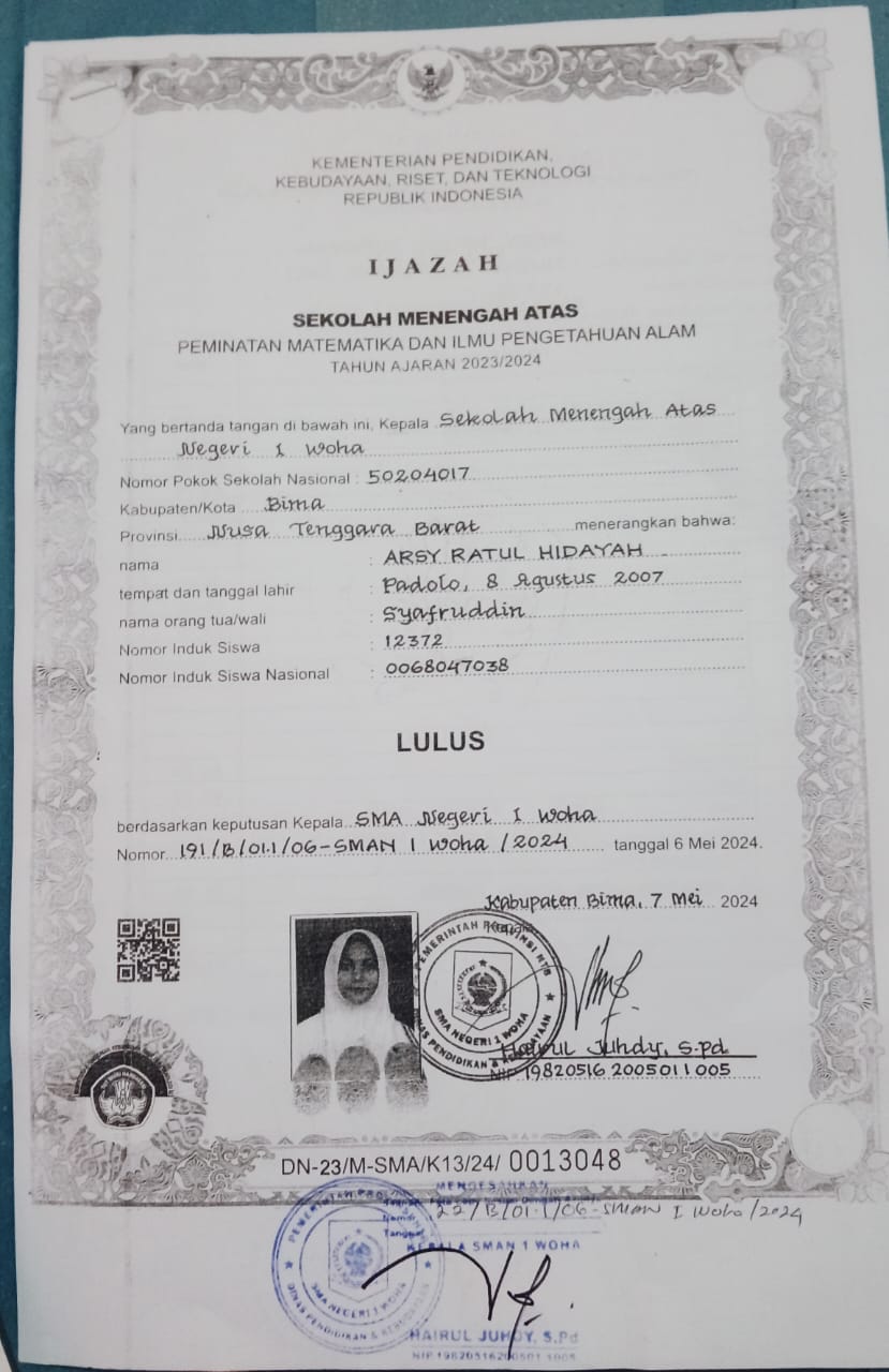 Index of /storage/app/public/mahasiswa/Gelombang II7/Umum45/Arsy ratul hidayah520618480807000170927091/Ijazah SMP/SMA