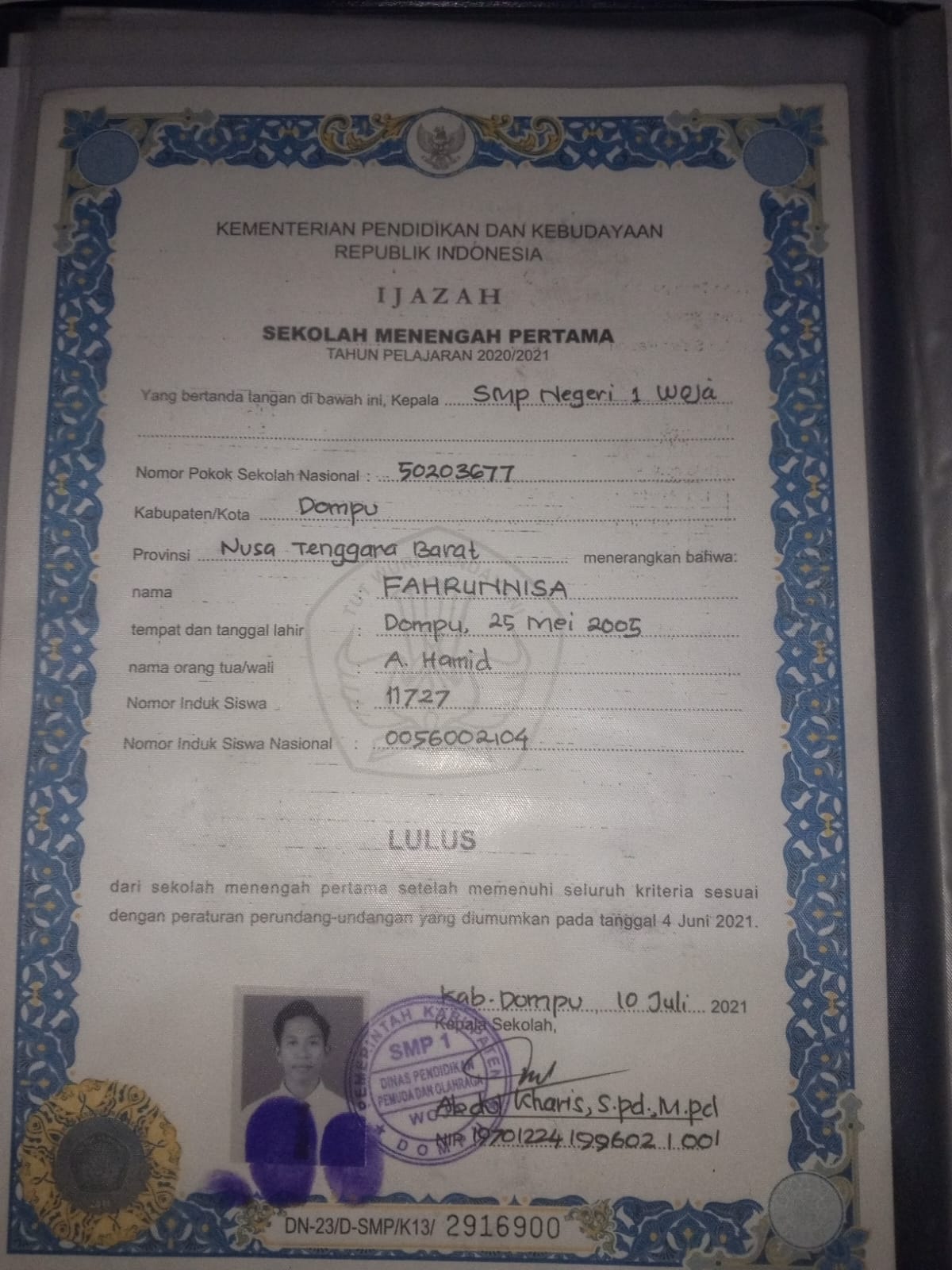 Index of /storage/app/public/mahasiswa/Gelombang II7/Umum45/Fahrunnisa520505250505000968416840/Ijazah SMP/SMA