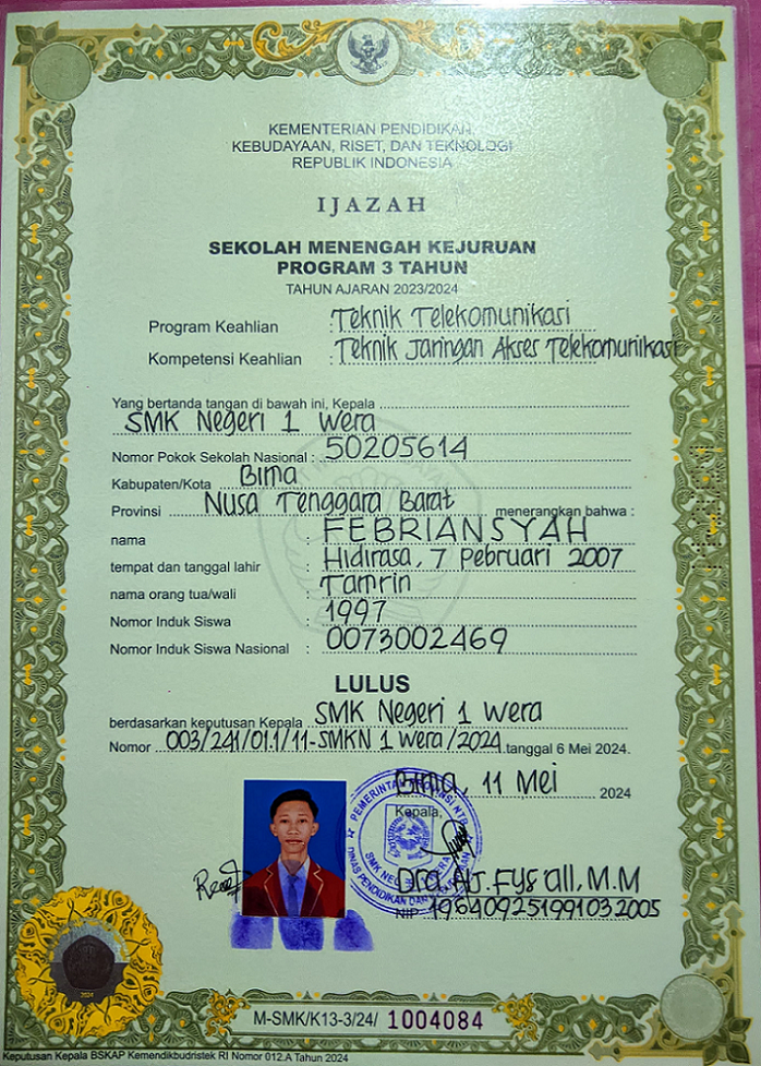 ![]() | Ijazah SMP/ | 2024-06-28 02:53 | - | |