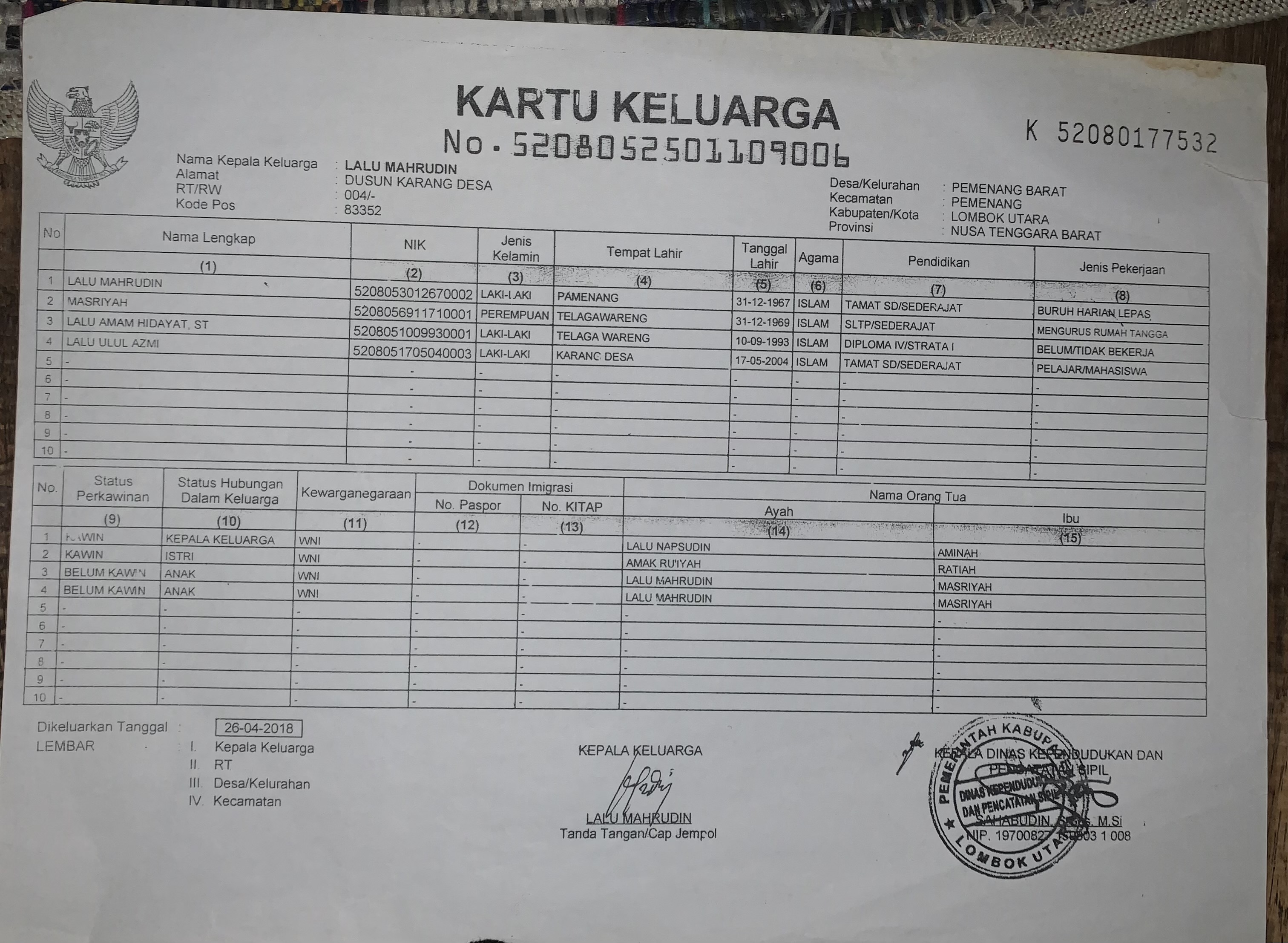 ![]() | Kartu KeluargaLalu Ulul Azmi71327131tMwaydnVfM.jpeg | 2024-06-20 01:18 | 1.2M | |