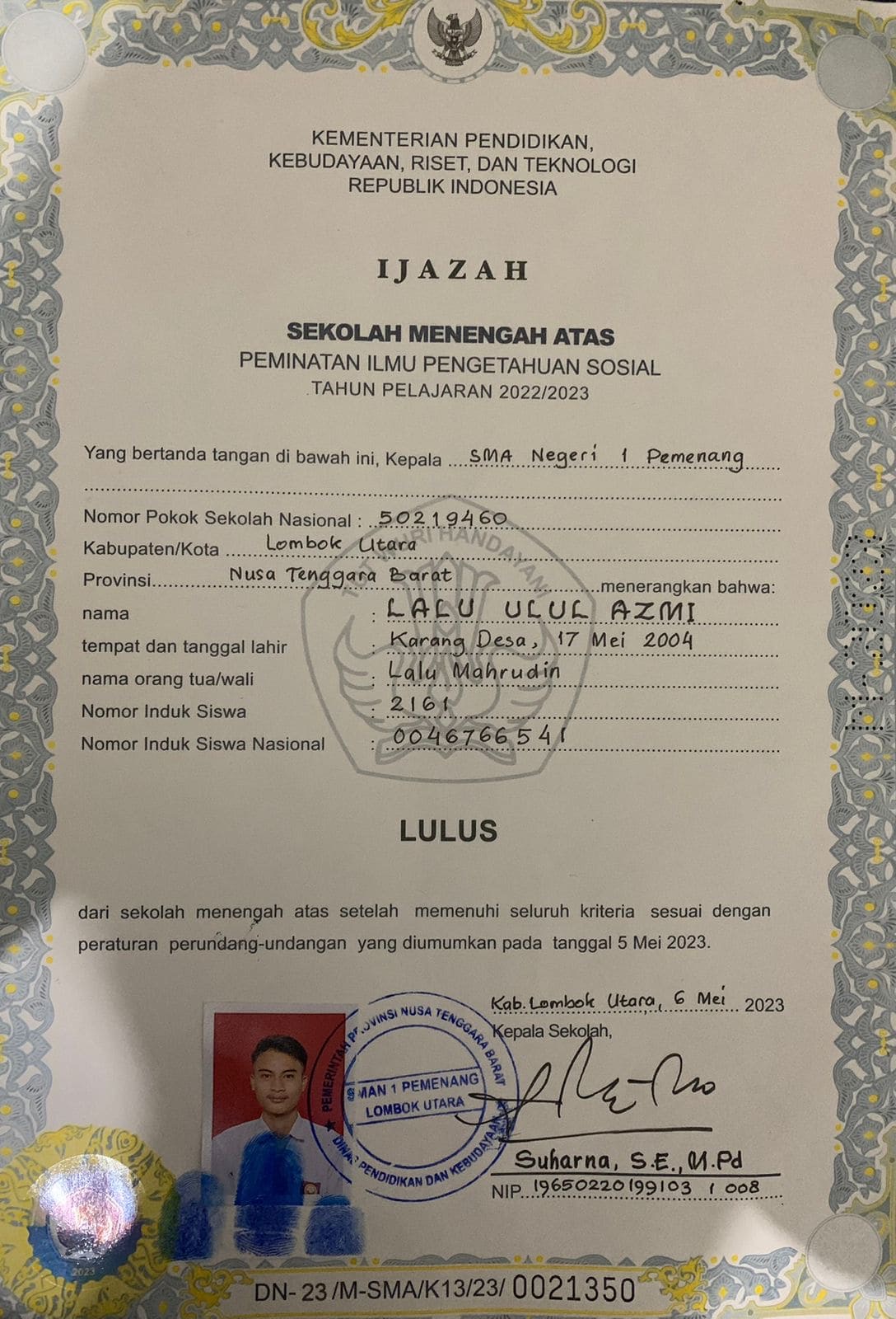 ![]() | Surat keterangan lulus sekolahLalu Ulul Azmi71327131AjM6YNWou9.jpeg | 2024-06-20 01:19 | 317K | |
