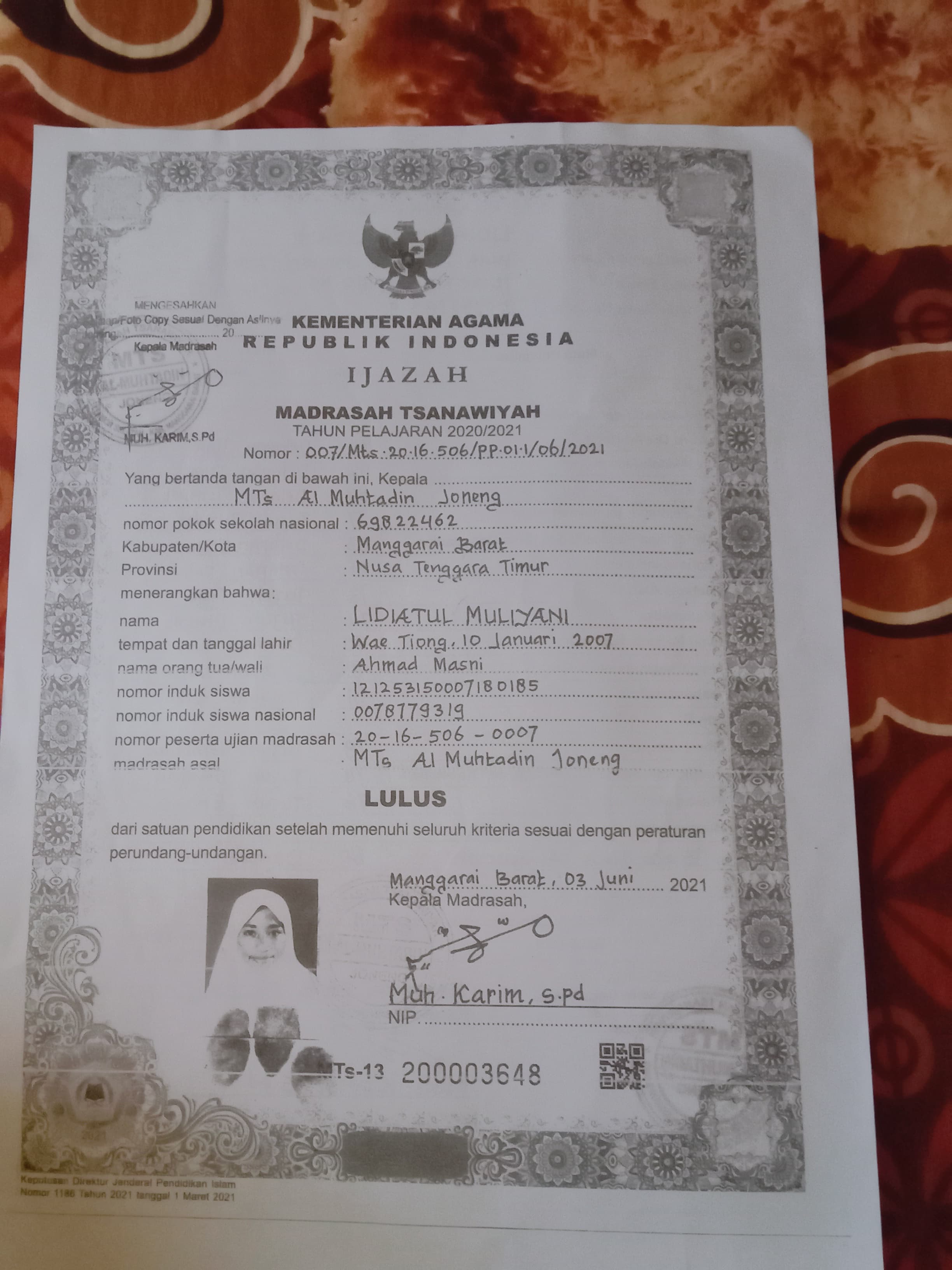 Index of /storage/app/public/mahasiswa/Gelombang II7/Umum45/Lidiatul muliyani531503500107000566946693/Ijazah SMP/SMA