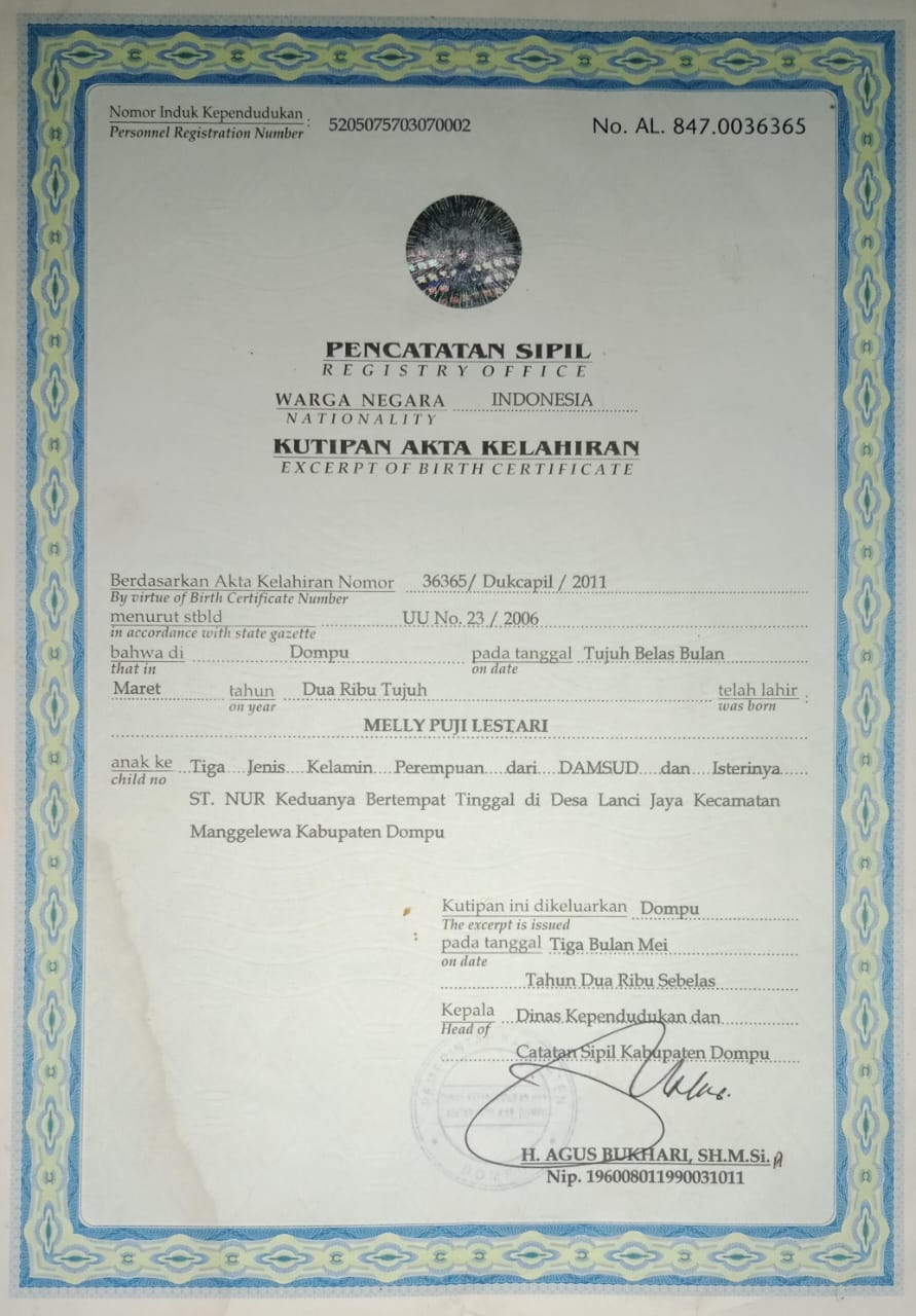 ![]() | Akta KelahiranMELLY PUJI LESTARI71607159rjiKRoXJWZ.jpeg | 2024-06-25 07:35 | 123K | |