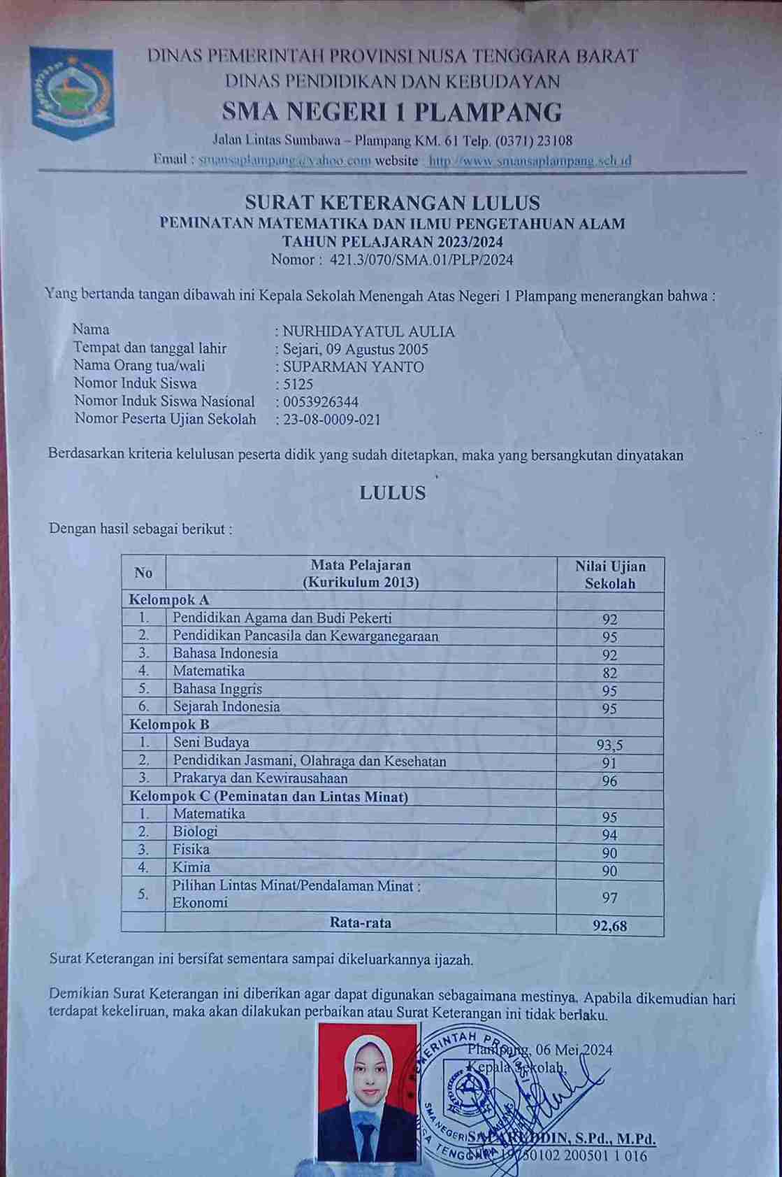 ![]() | Surat keterangan lulus sekolahNurhidayatul Aulia74677466b7gKSqPMI0.jpg | 2024-06-28 09:28 | 94K | |