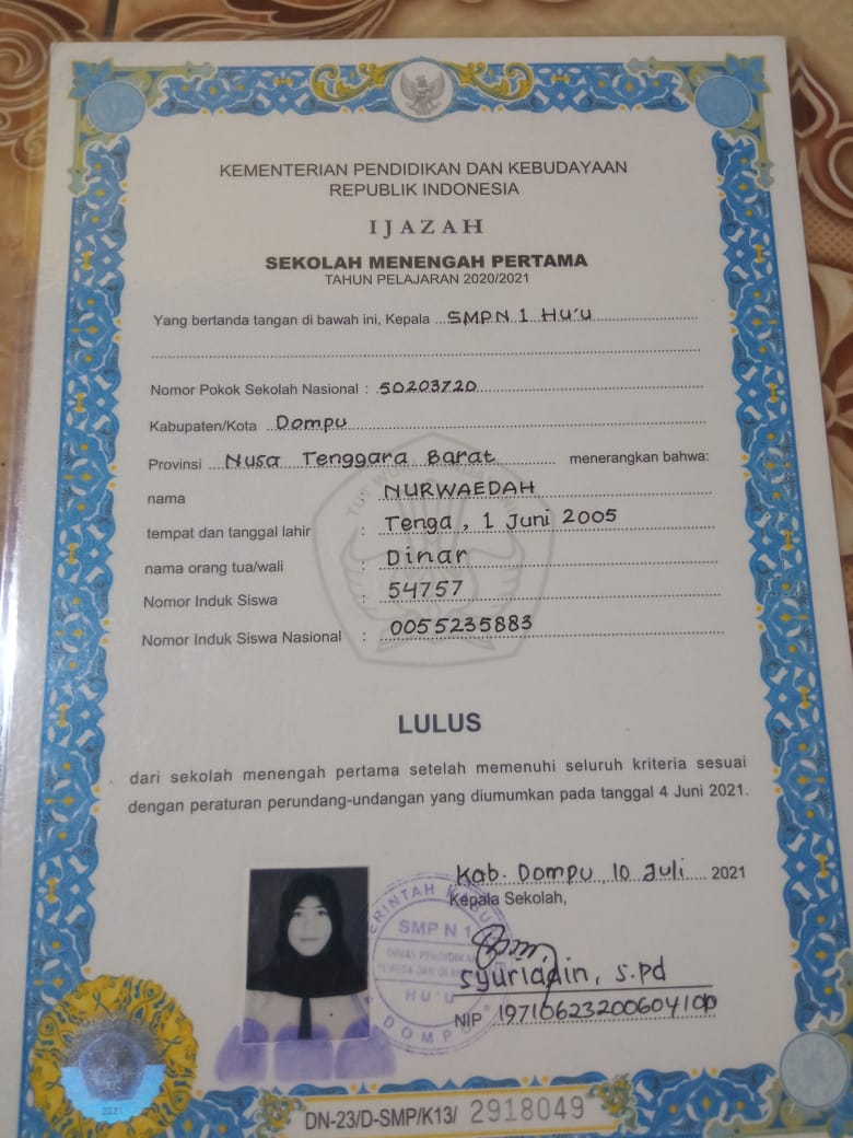 Index of /storage/app/public/mahasiswa/Gelombang II7/Umum45/Nurwaedah520503410605000162936293/Ijazah SMP/SMA