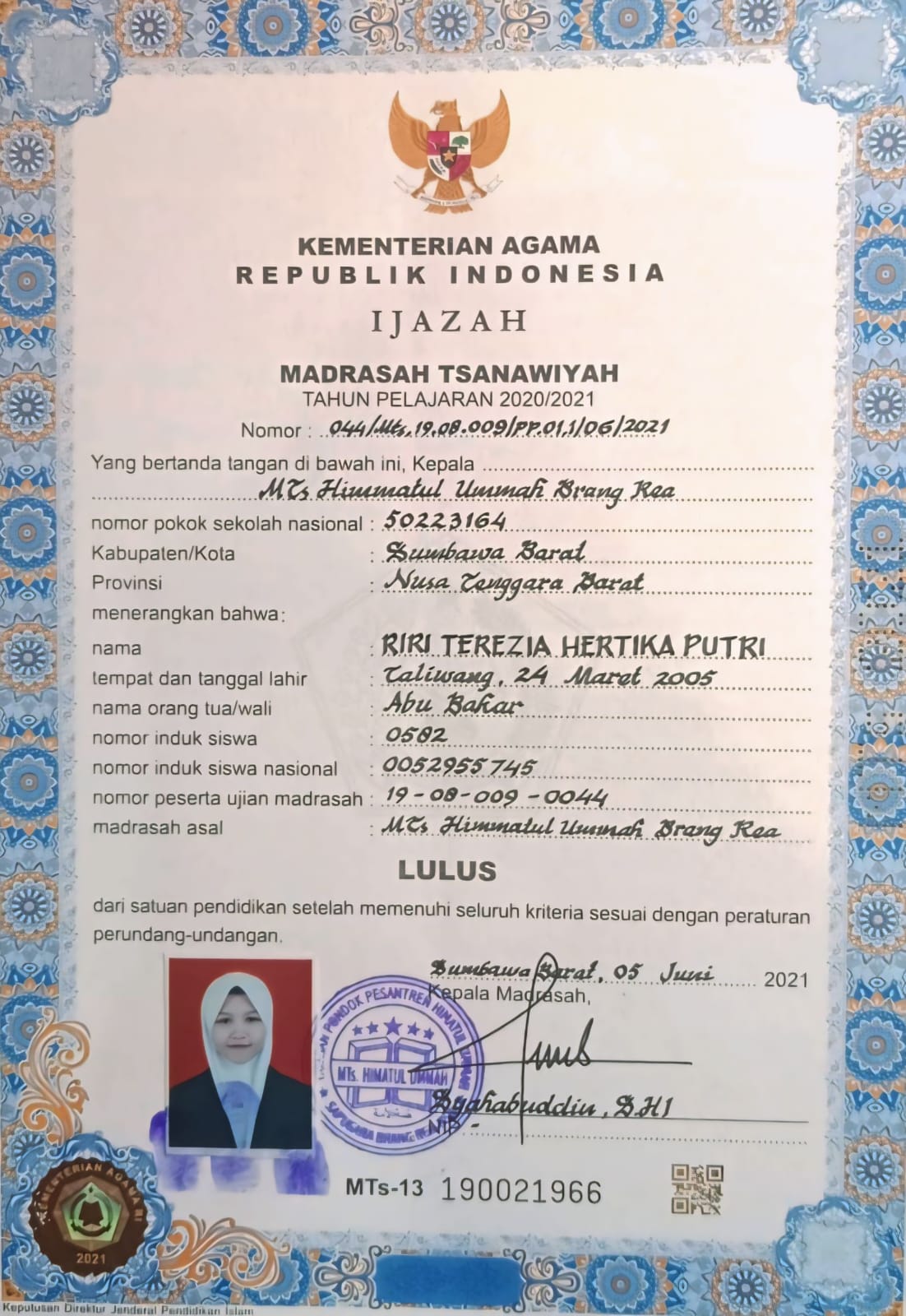 Index of /storage/app/public/mahasiswa/Gelombang II7/Umum45/Riri terezia hertika putri520702640305000169996998/Ijazah SMP/SMA