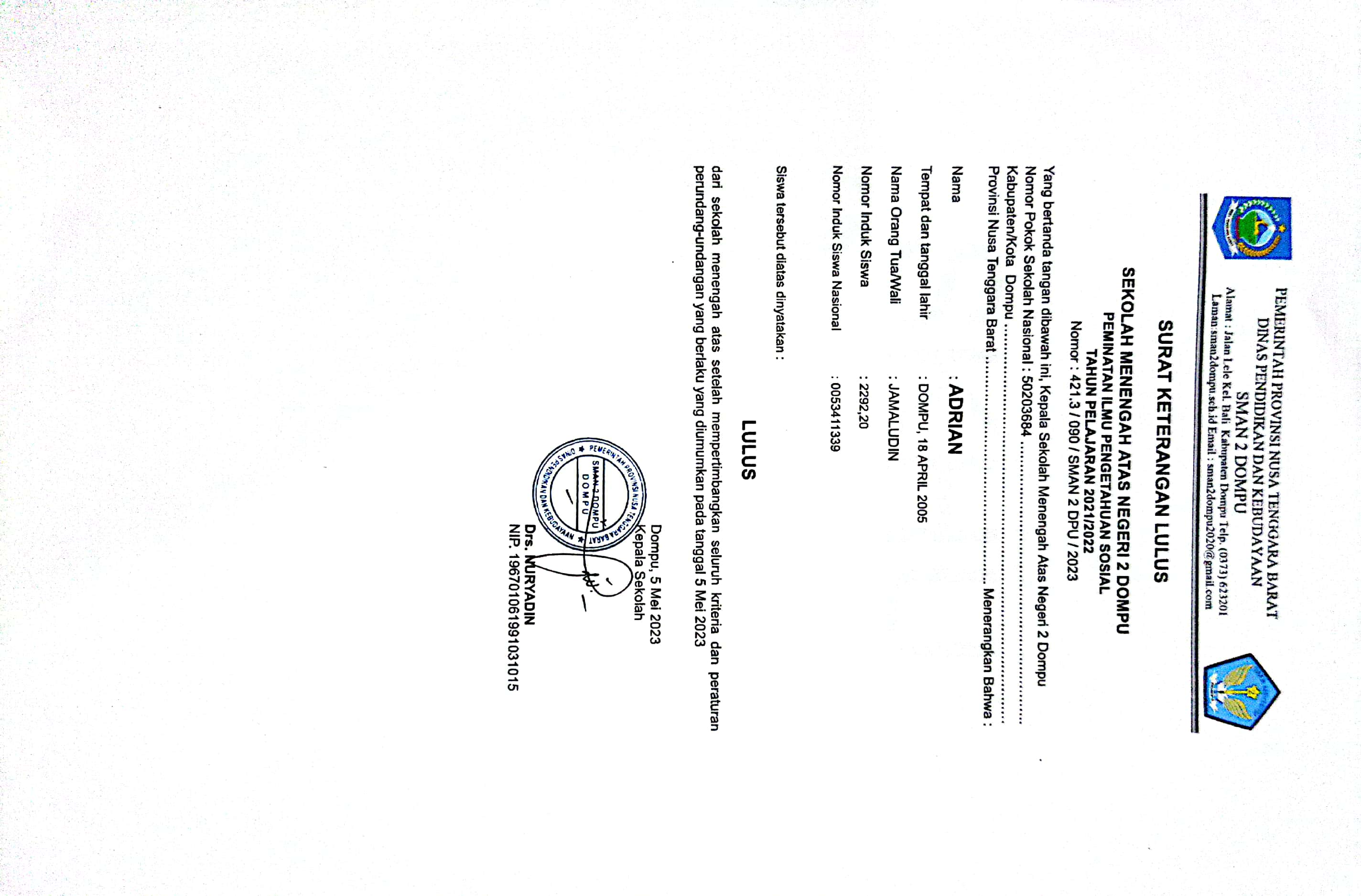 ![]() | Surat keterangan lulus sekolahADRIAN25732573yGfPfn0AGv.jpg | 2023-08-21 13:26 | 226K | |