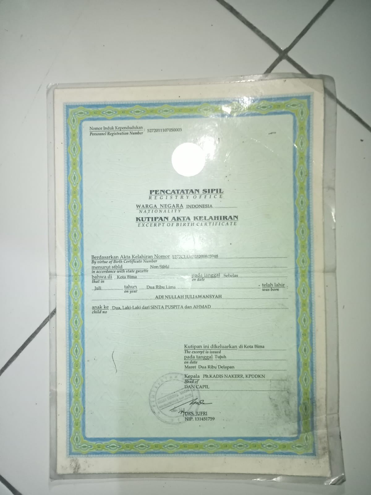 ![]() | Akta KelahiranAdi nullah Juliawansyah40674067FZLZKQ7ypW.jpg | 2023-08-30 03:54 | 128K | |