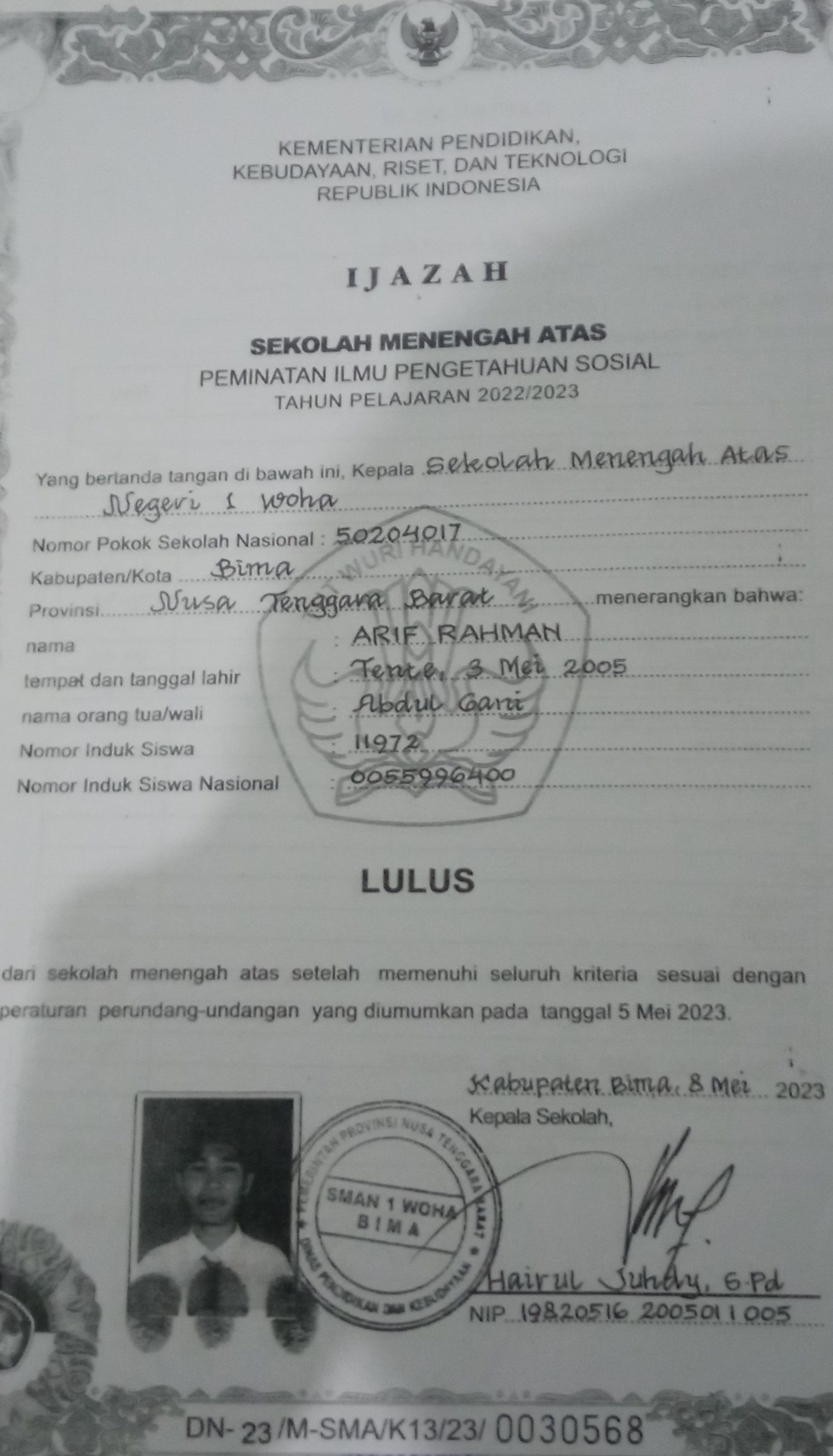 Index of /storage/app/public/mahasiswa/Gelombang III4/Umum20/Arif Rahman520603410728102638373837/Ijazah SMP/SMA