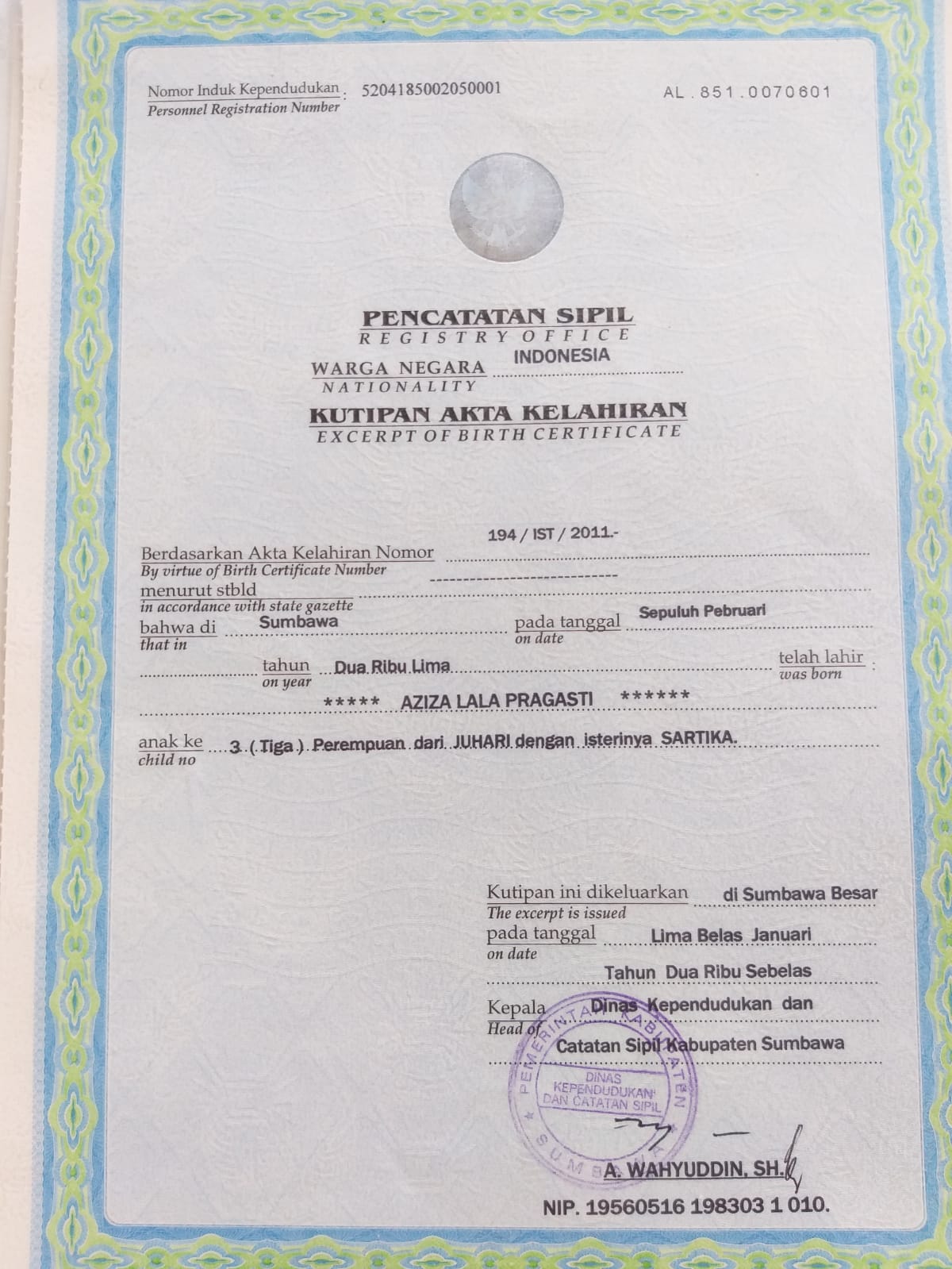 ![]() | Akta KelahiranAziza lala pragasti32883288WVyqbPyG8t.jpg | 2023-08-16 11:39 | 209K | |