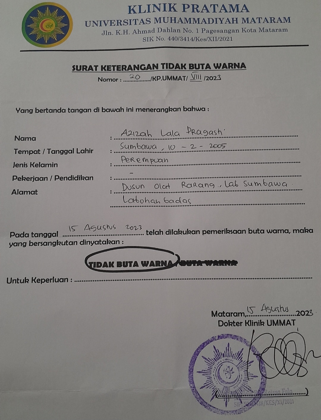 ![]() | Surat keterangan tidak buta warnaAziza lala pragasti32883288VijlT5eUbk.jpg | 2023-08-16 11:44 | 357K | |