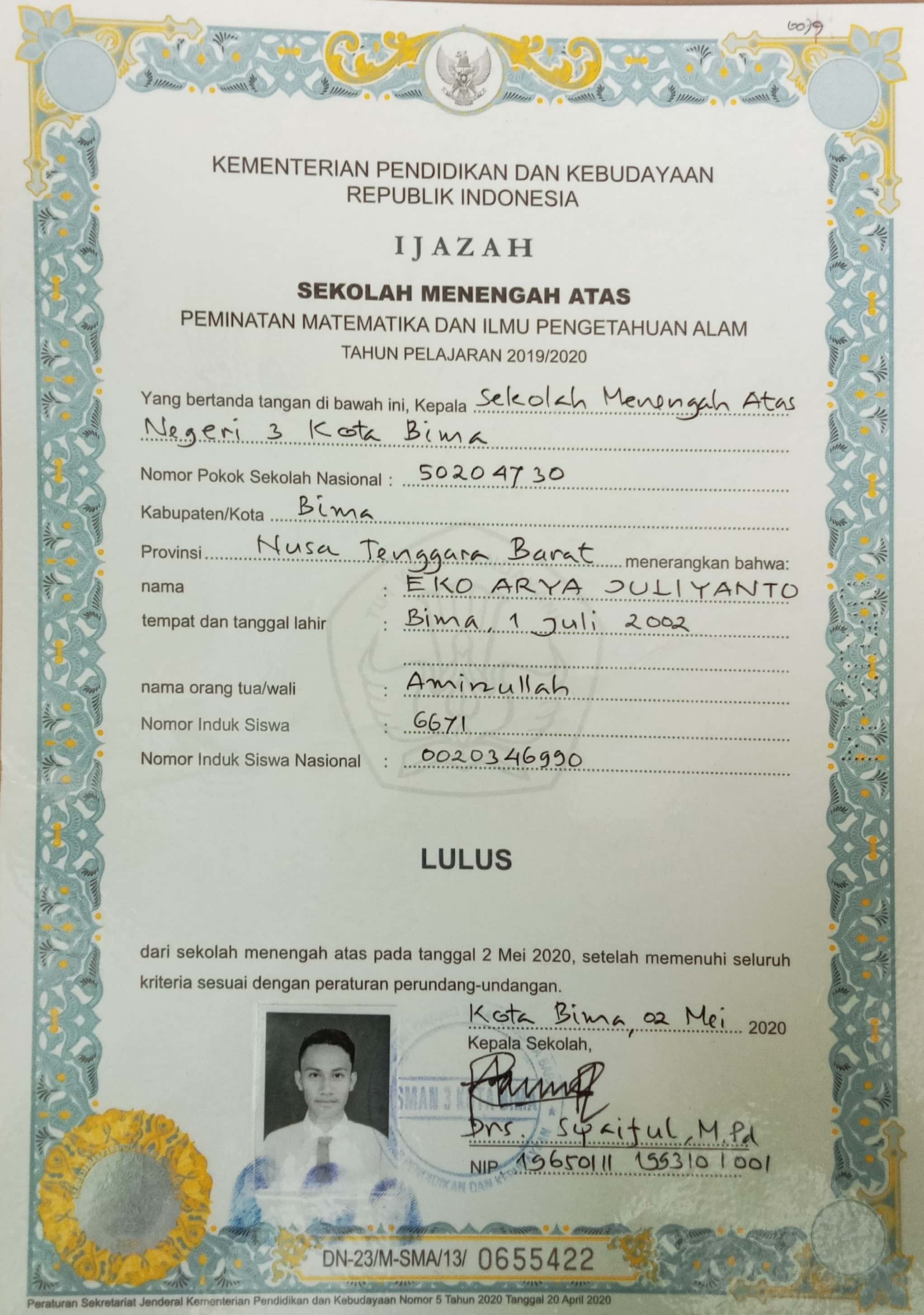 ![]() | Surat keterangan lulus sekolahEko arya juliyanto47634763Yv5miBu5Py.jpg | 2023-08-30 17:06 | 306K | |