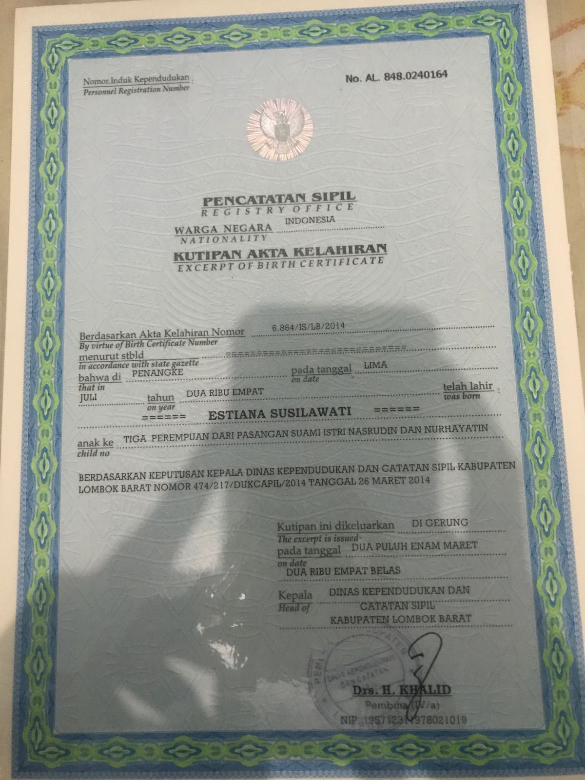 ![]() | Akta KelahiranEstiana susilawati374637466JL6vY88Ao.jpg | 2023-09-12 06:43 | 259K | |