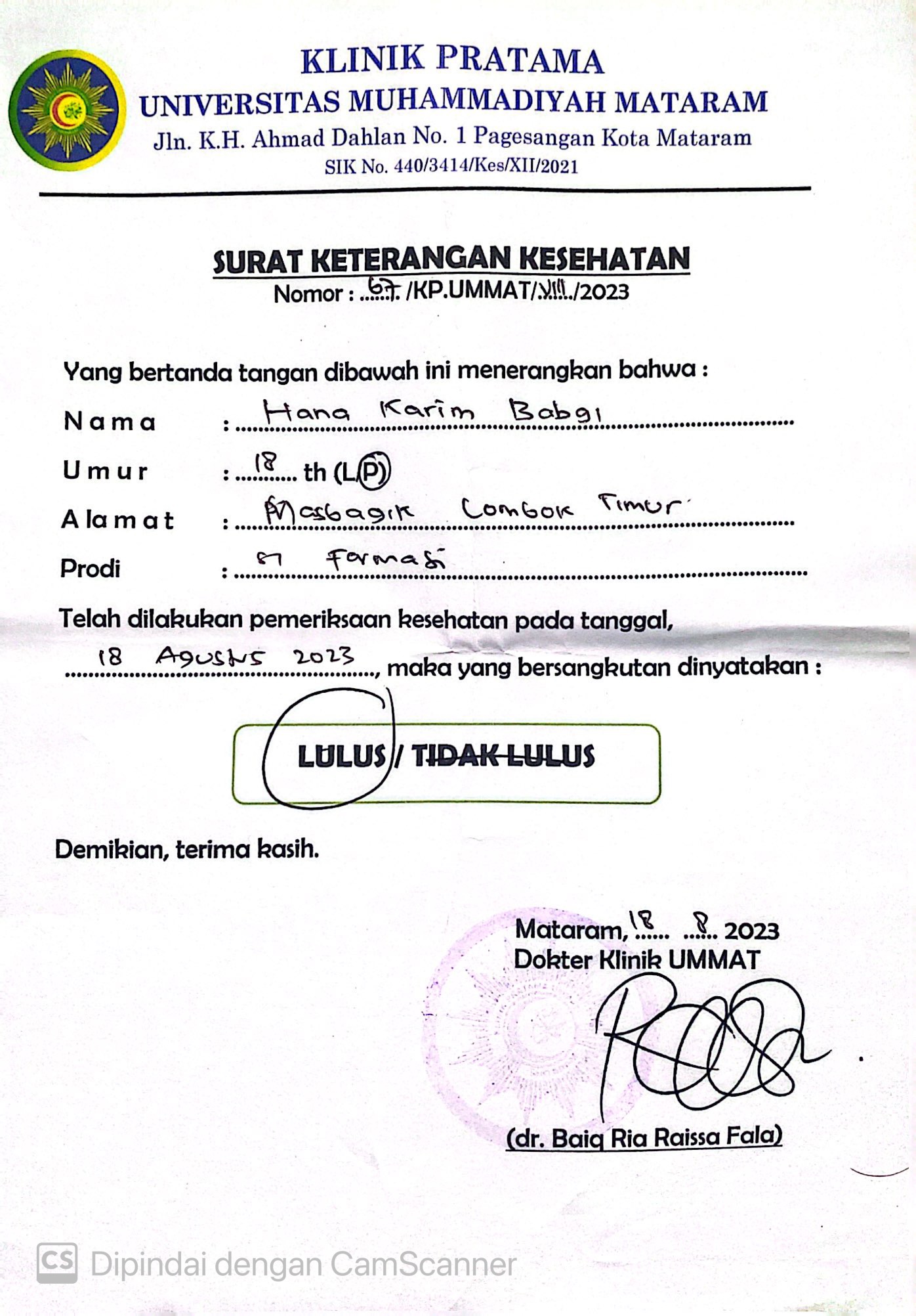 ![]() | Surat keterangan sehat jasmani dan rohaniHana Karim Babgi31573157bRLKDoNSG4.jpeg | 2023-08-29 16:12 | 489K | |
