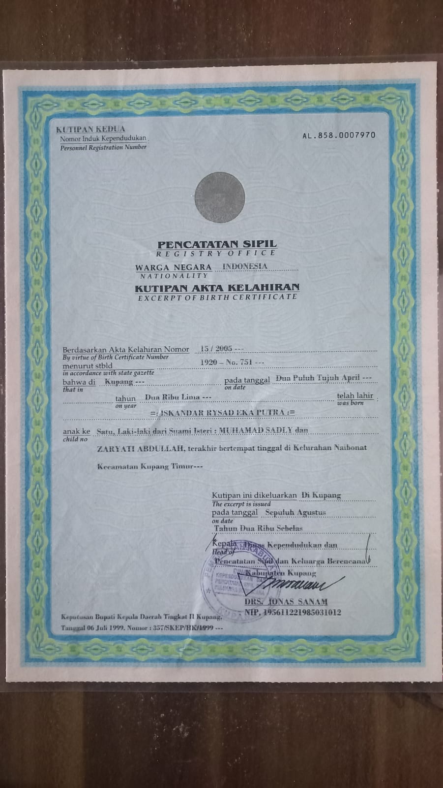 ![]() | Akta KelahiranISKANDAR RYSAD EKA PUTRA25662566gMKJqHFgTP.jpg | 2023-08-19 23:43 | 156K | |