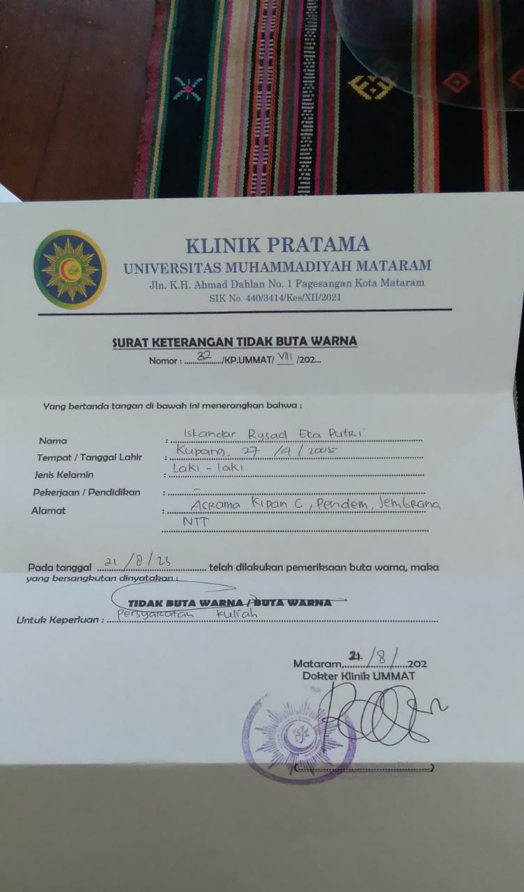![]() | Surat keterangan tidak buta warnaISKANDAR RYSAD EKA PUTRA2566256658OIrYl5qp.jpg | 2023-08-21 03:07 | 78K | |