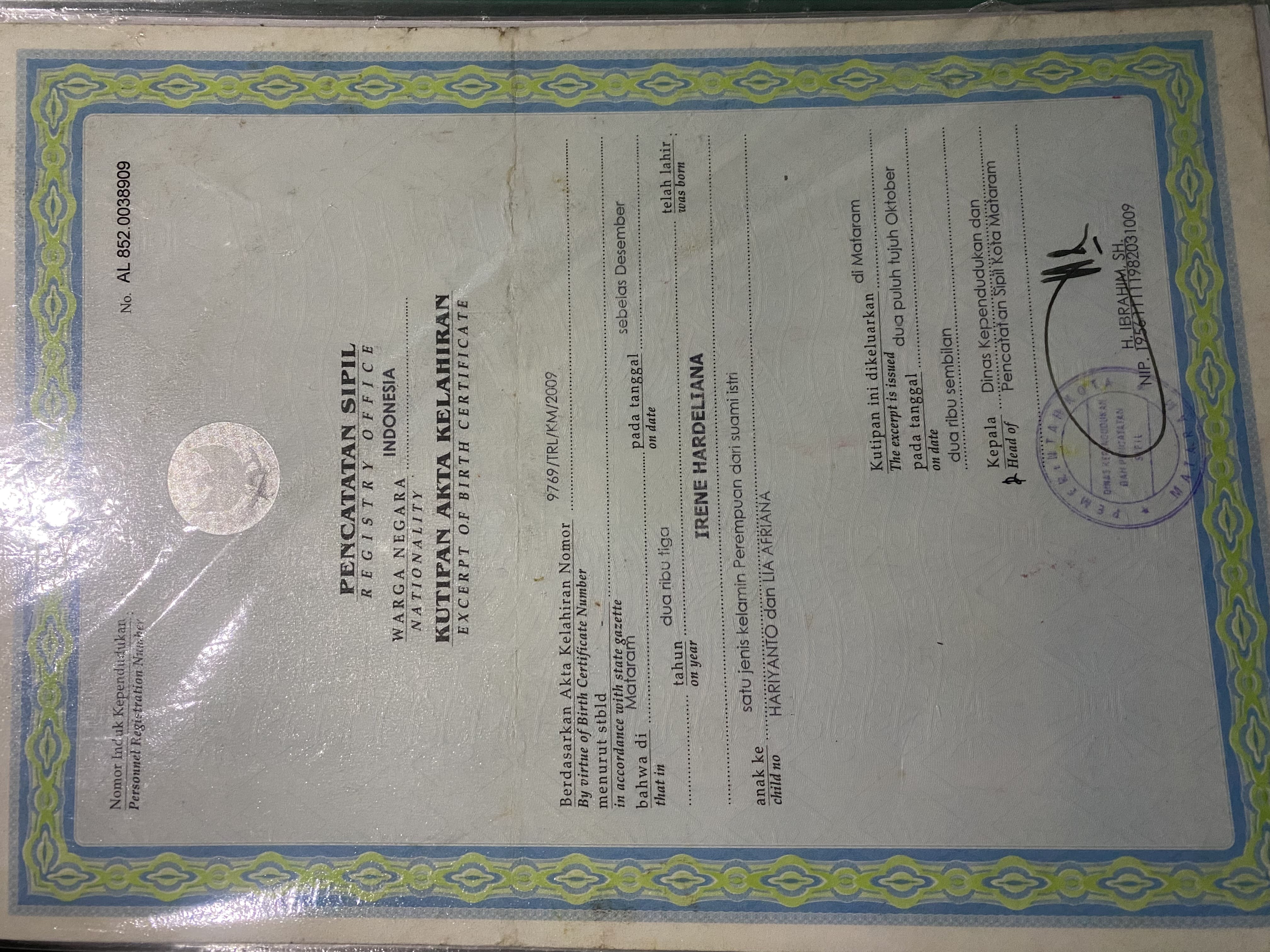 ![]() | Akta KelahiranIrene Hardeliana35543554tpNcB4trVx.jpeg | 2023-10-05 12:08 | 1.3M | |