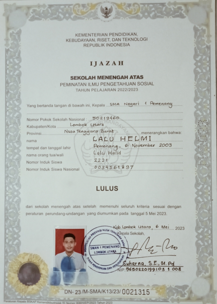 Index of /storage/app/public/mahasiswa/Gelombang III4/Umum20/Lalu Helmi520805061103000248664866/Ijazah SMP/SMA