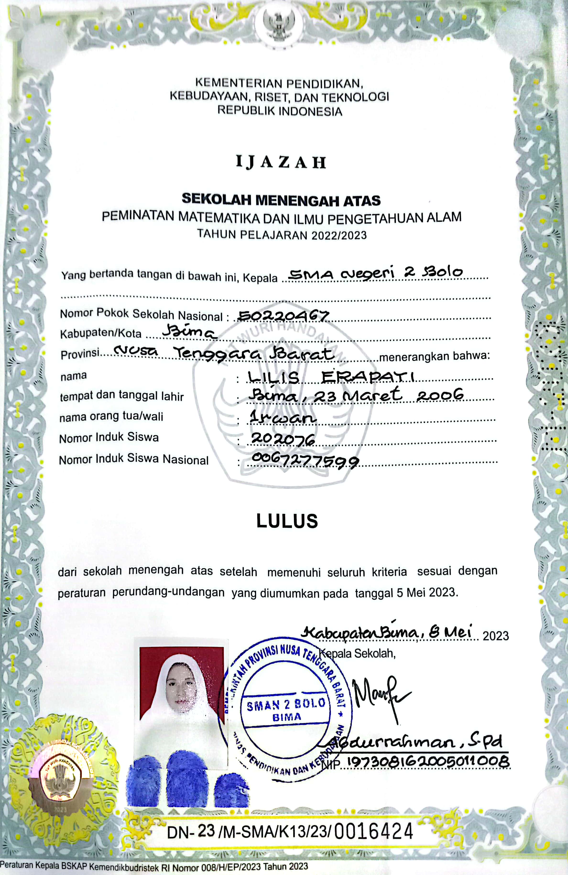 Index of /storage/app/public/mahasiswa/Gelombang III4/Umum20/Lilis erapati250602630506000229502950/Ijazah SMP/SMA