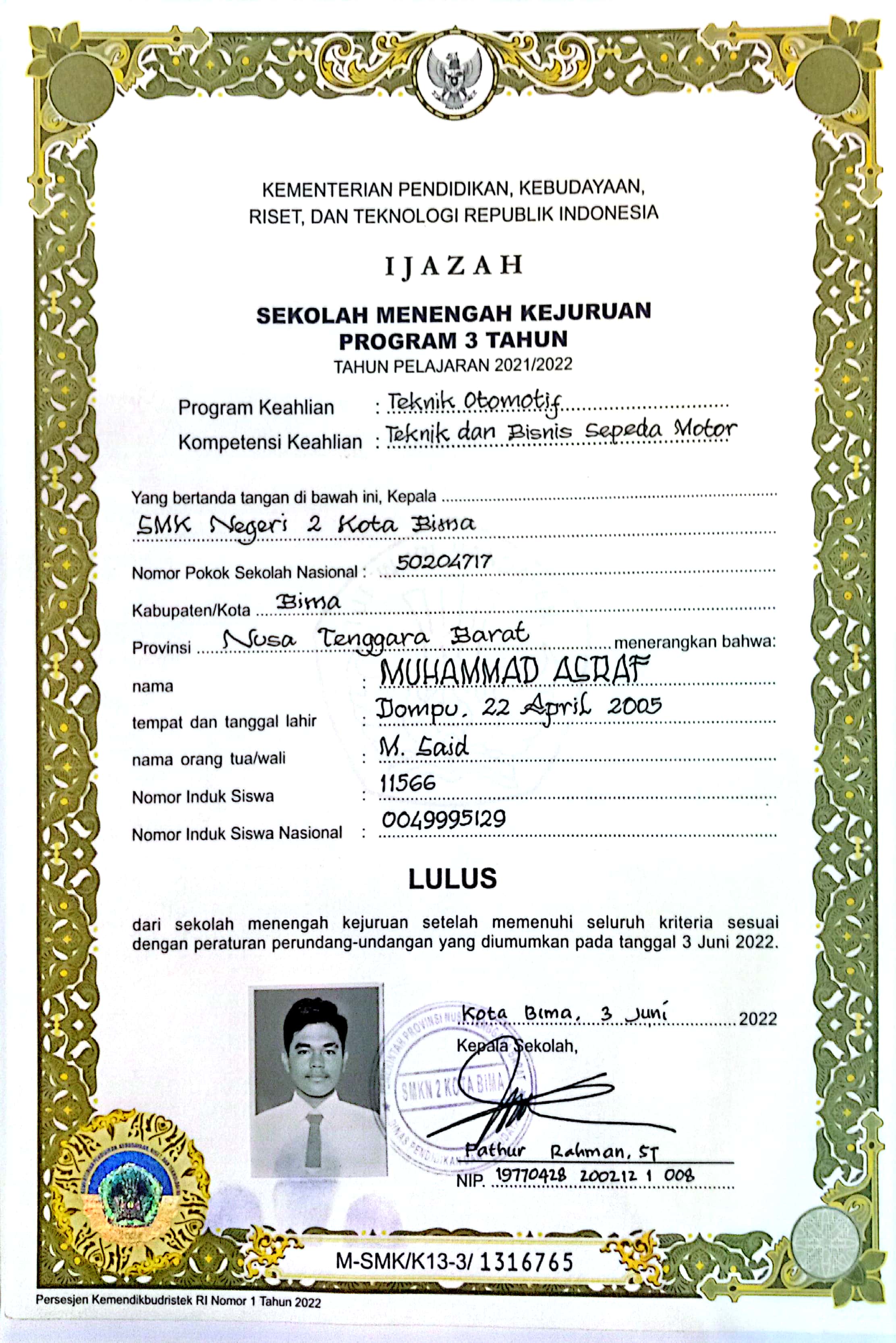 Index of /storage/app/public/mahasiswa/Gelombang III4/Umum20/MUHAMMAD ASRAF520502220405000147844784/Ijazah SMP/SMA