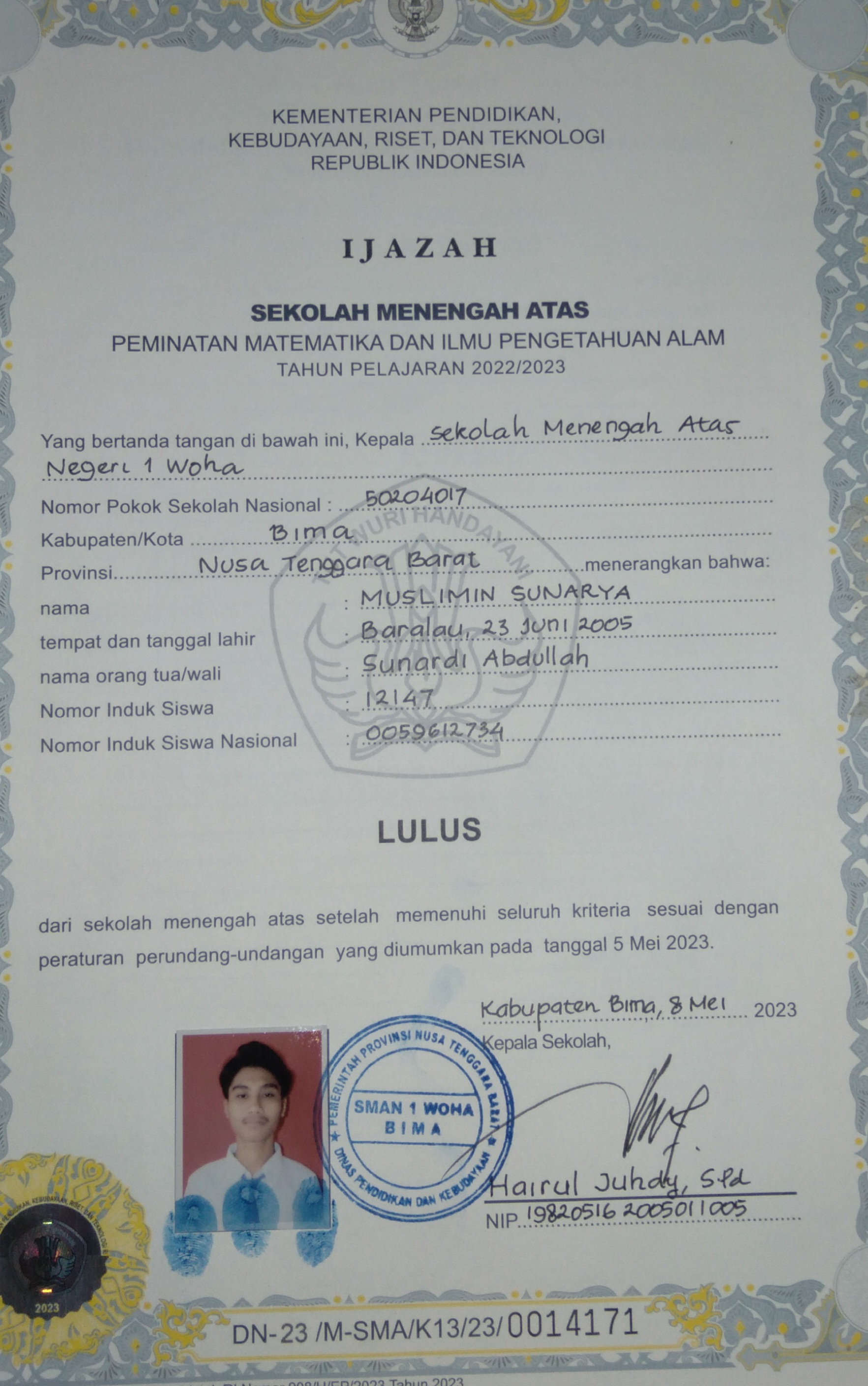 Index of /storage/app/public/mahasiswa/Gelombang III4/Umum20/Muslimin Sunarya520601230605100437253725/Ijazah SMP/SMA