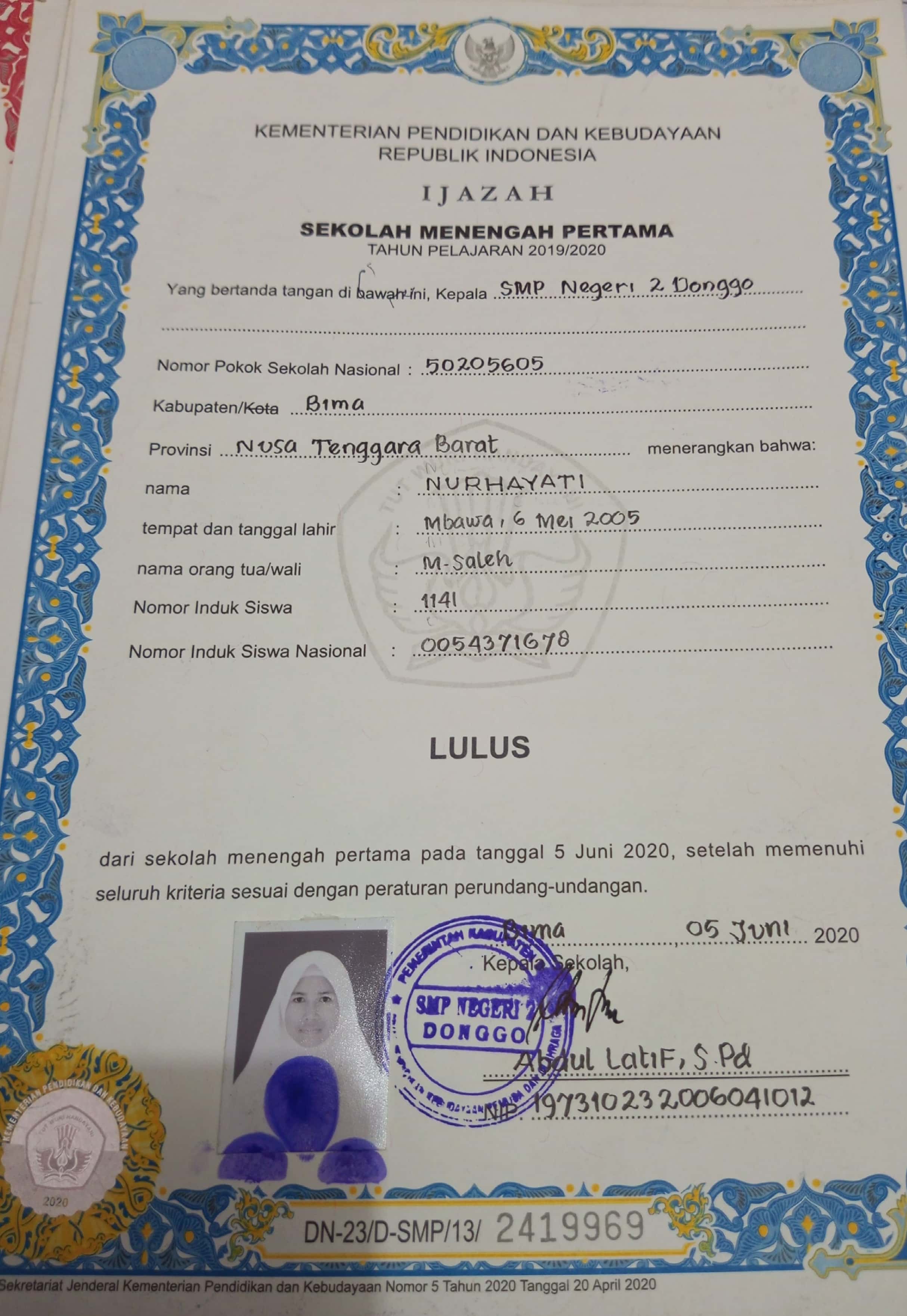 Index of /storage/app/public/mahasiswa/Gelombang III4/Umum20/NURHAYATI520608460505000133243324/Ijazah SMP/SMA