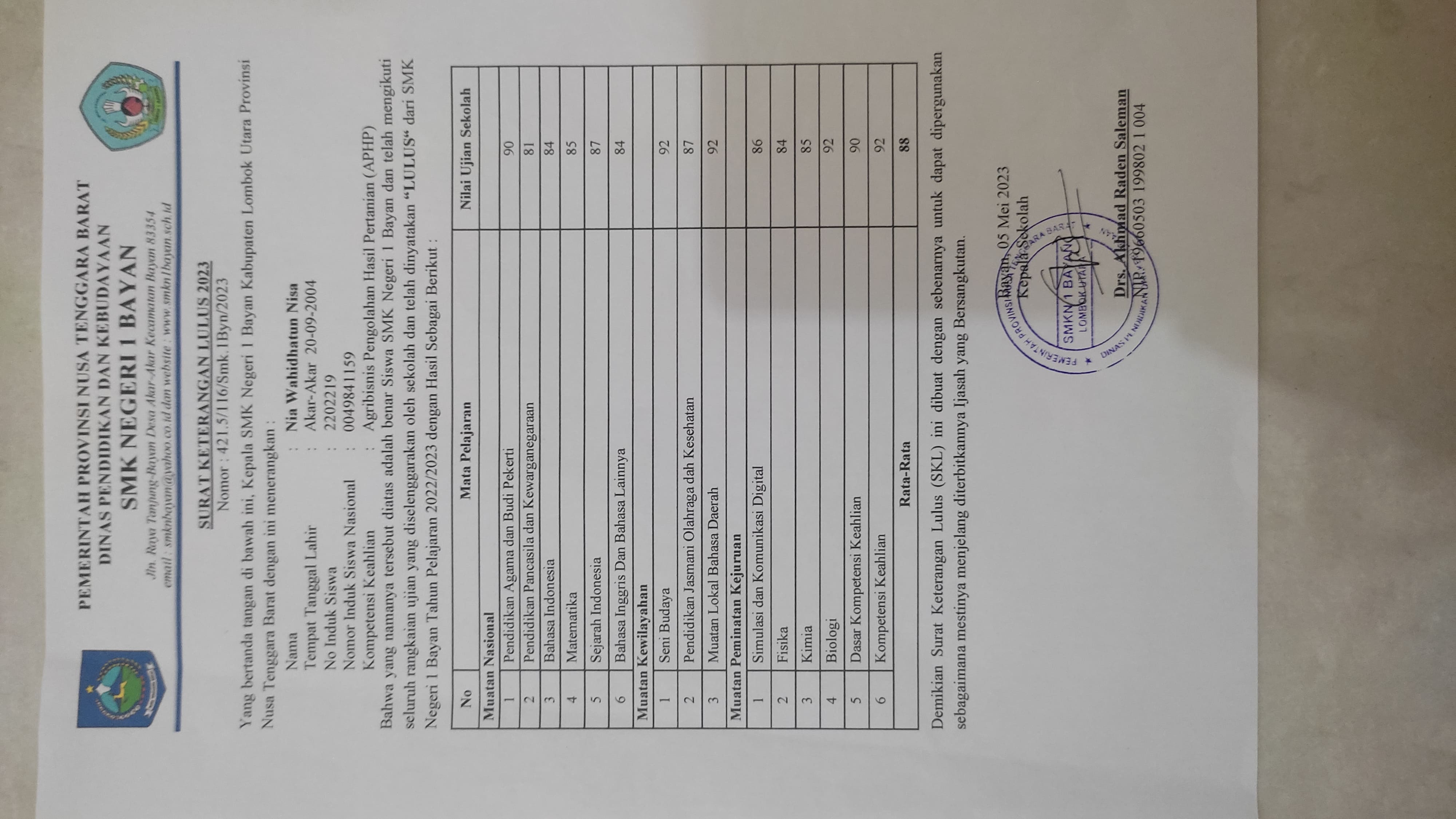 ![]() | Surat keterangan lulus sekolahNia Wahidhatun Nisa22672267u9FQM6WdRj.jpg | 2023-09-02 07:41 | 454K | |