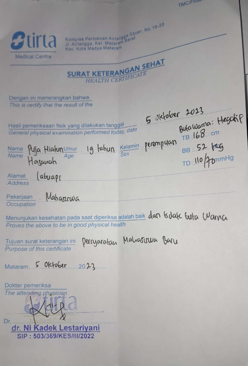 ![]() | Surat keterangan tidak buta warnaPuja niatun hasanah31303130u6q1RS8AvN.jpeg | 2023-10-05 05:13 | 78K | |