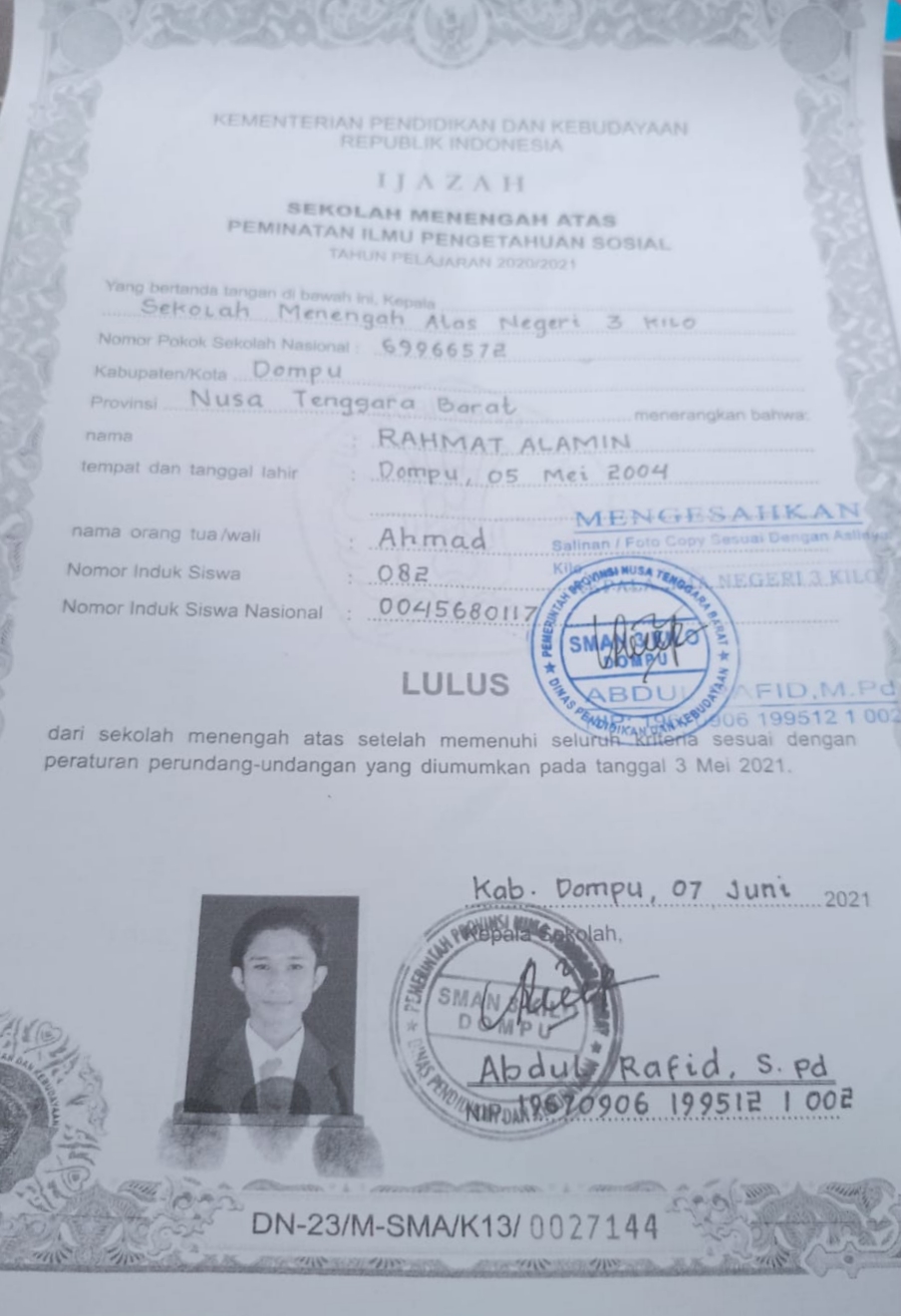 Index of /storage/app/public/mahasiswa/Gelombang III4/Umum20/RAHMAT ALAMIN520504050504000540234023/Ijazah SMP/SMA