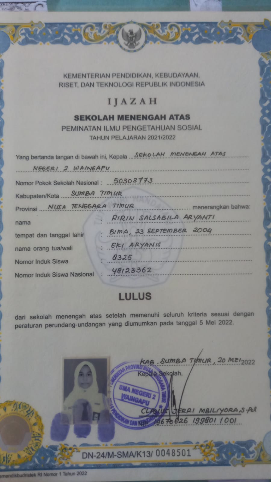 Index of /storage/app/public/mahasiswa/Gelombang III4/Umum20/Ririn salsabila Aryanti520602630904000127982798/Ijazah SMP/SMA