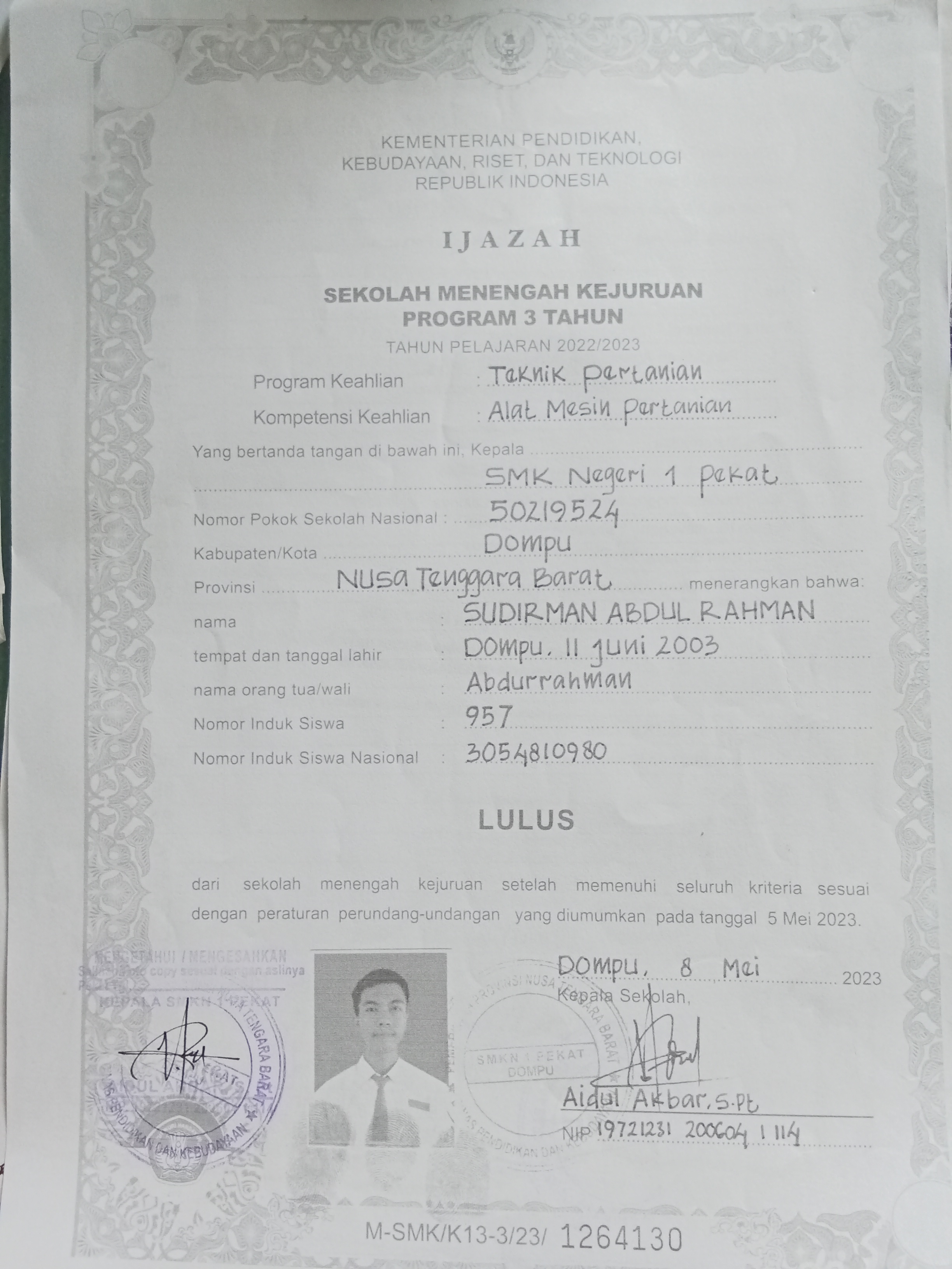 Index of /storage/app/public/mahasiswa/Gelombang III4/Umum20/SUDIRMAN ABDUL RAHMAN520506010705009925122512/Ijazah SMP/SMA